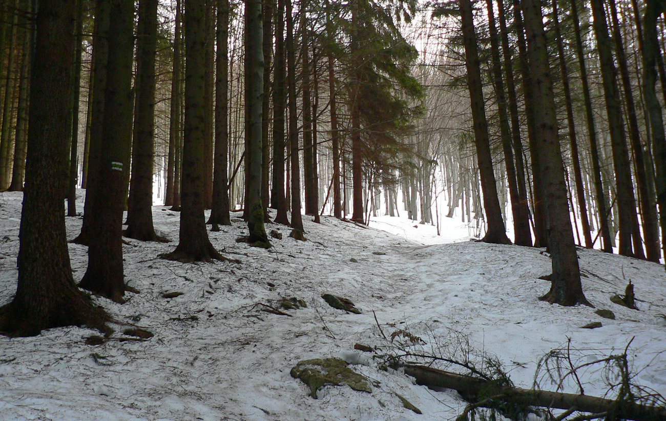 Štveral som sa zo Šútova, snehoľad sa na ceste objavil až na zákrute nad Zajacovou, ale po pár metroch zas už len holá hlina. Možno by to šlo na lyžiach popri potoku? Stopa od zákruty vyzerala byť použiteľná. Od drevoskladu (tam aj miestny pásový „autobus“ parkoval) po Ploštiny už sa dalo na lyžiach hore aj dole, aj keď tam sa najviac kĺzalo, normálne by to aj haršajzne chcelo. Od Ploštín už pohoda a Generál tvrdý ako fisová zjazdovka.