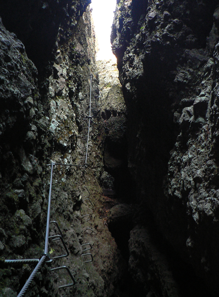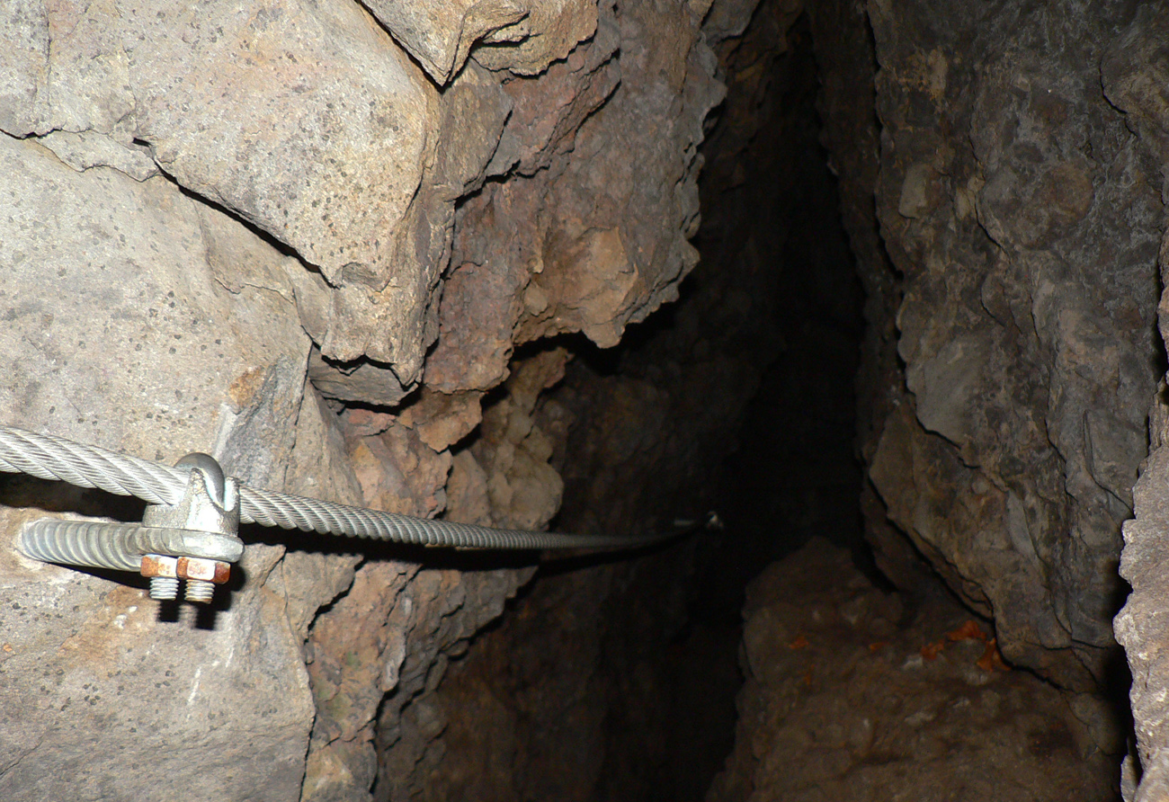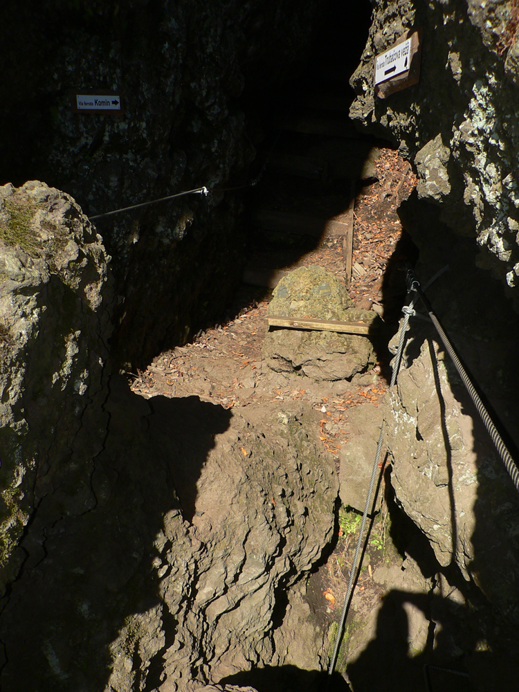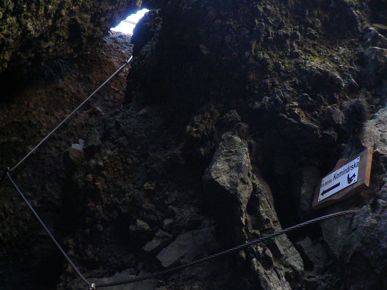 Srandovný je taký dáky politický podtón: Most a Sieť ako najznámejšie tunajšie pojmy :-) Ale je tu aj jedna skutočná Výzva – najťažšia ferrata na Slovensku s reálnou obtiažnosťou E. Najkrajší je ale jednoznačne Komín – pohodový, len miestami asi nič moc pre klaustrofobikov. V ňom je viac možností, kade stúpať: na začiatku po kolmom Rebríku alebo jednoduchším Jaskyniarskym variantom. Potom sa dá odbočiť na vzdušnú Trubačovu vežu s vrcholovým krížom a z nej ujsť „na pevninu“ ďalším adrenalínovým mostom. V závere Komína je ešte možné vyskúšať krátky, ale náročnejší Kominársky variant. Samotný zostup z hrebeňa k Sieti, Výzve a do Komína je poriadne strmý, takže je zaistený samostatnou ferratou (A, B) s Tibetským mostom na jej konci. Priamo na hrebeni je ešte cvičná ferratka Jánošíkova diera a komu by bolo teplo, aj neoznačená (zatiaľ?), ale zaistená puklina plná snehu. Hej, aj po dlhom lete je ho tam ešte dosť! K tomu lavičky a infotabule, všetko ako má byť.