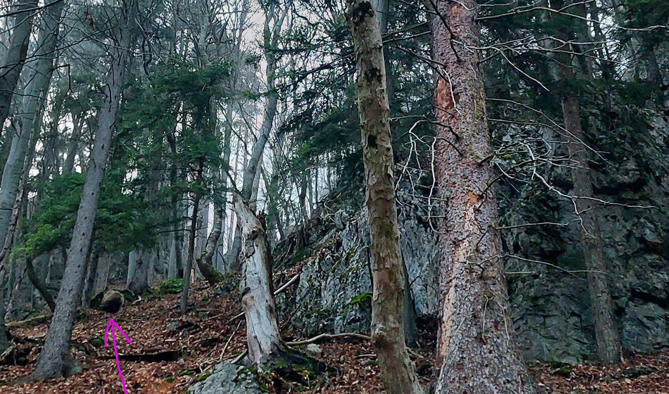 Južný obchvat Prieložnice, to bol ten najkrajší úsek – úzky, lístím zapadnutý, ale jednoznačný singlík takmer po vrstevnici, popod bralá. Ako som si jedno fotil, ani by som nebol zbadal, že ma pán domáci pozoruje. Až keď urazene sfučal a otočil sa mi chrbtom. Tak som sa stihol len ospravedlniť za vyrušovanie a pobrali sme sa každý svojou cestou, našťastie každý inou :-)