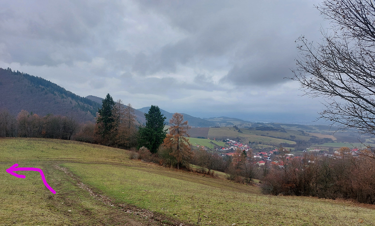 Na úvod som pribalil Maja, ktorý dostal priepustku len doobeda a na môj údiv tú peknú cestu na Bieličie od Sučian nepoznal. Čo je to za domorodca? Niet divu, že ma najprv vliekol cez nejaké kompostovisko, kde také blato, aké sme na začiatku ešte neakceptovali, tak davaj nazad a po lúkach. Cez Bieličie pohoda a výhľady len do sivoty. Potom poza salaš do ústia Konštianskej doliny blato ešte horšie, len už nevyhnuteľné. Tam nad Konským sme sa navzájom opustili.