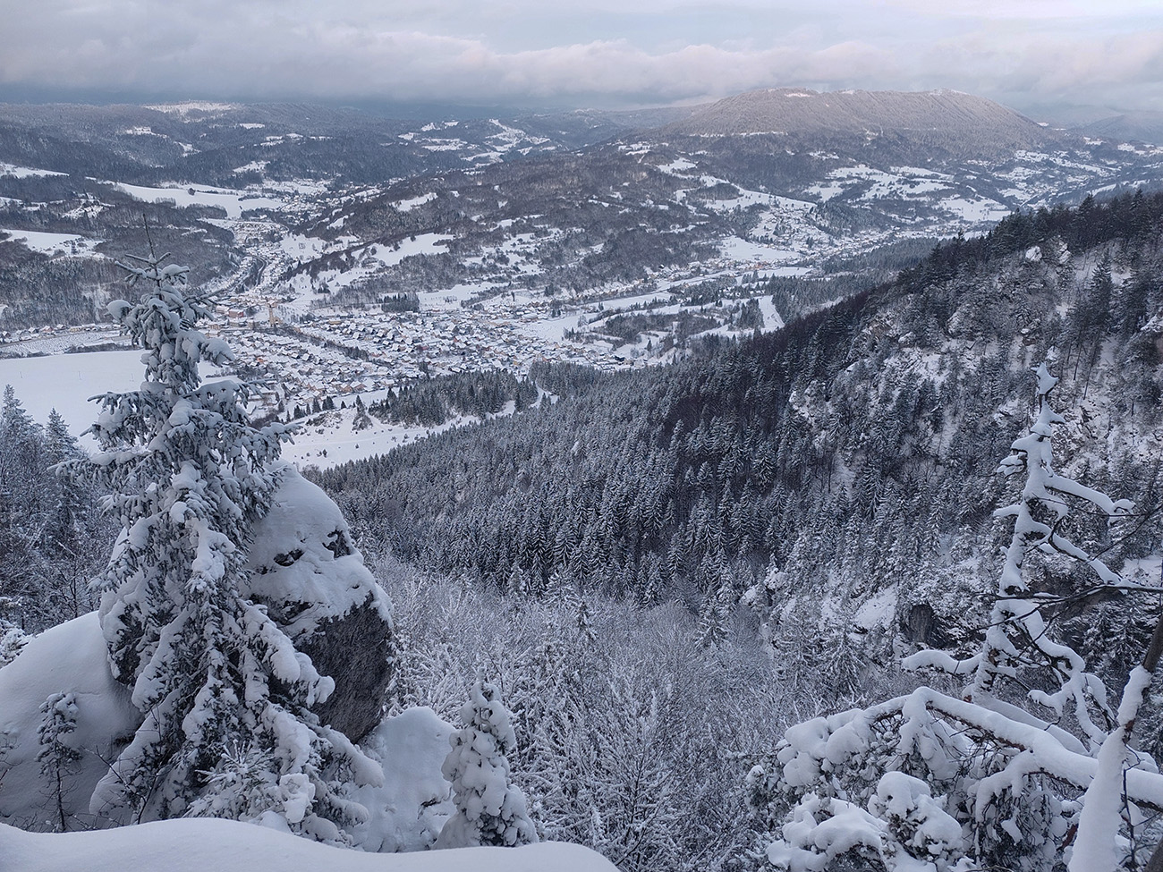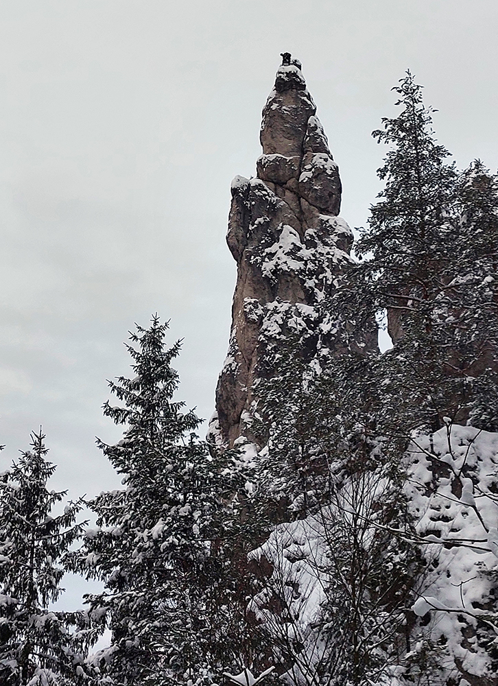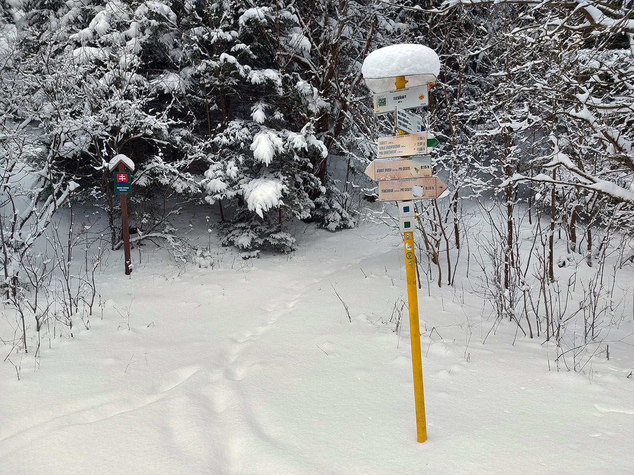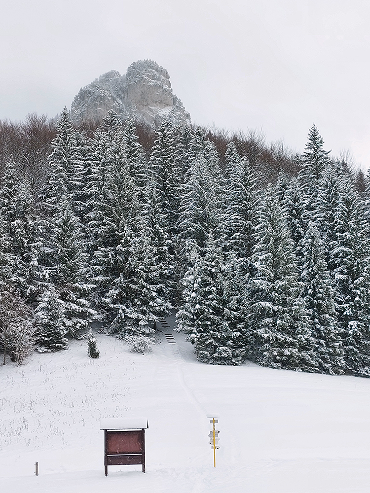 Diery, Boboty, Tiesňavy, Sokolie, Obšívanka – klasické turistické ciele nad Terchovou a pekne v tomto poradí. Atraktívne svojou krásou, všeobecne známe, a preto väčšinou plné turistov. Lenže nastalo novoročné ráno, keď sa všetky penzióny a priváty len veeeľmi pozvoľna prebúdzali zo silvestrovského žúrovania. Navyše teplota jemne pod nulou, na zemi (aj na neodhrnutých chodníkoch samozrejme) tak do 20 cm čerstvého snehu, ktorý navyše dopoludnia stále jemne pribúdal. To bolo treba využiť, lebo skúsenosti hovorili, že bude ľudoprázdno. Takže na nohy hrubé boty, na boty štucne (niektorí) a išlo sa. Necelých 13 km a necelý kilák prevýšenia, ale podceňovať tie technické preliezačky netreba, v strminách je postup vždy pomalý a samozrejme čerstvý sneh ho teraz ešte viac komplikoval. Častokrát sme veľmi nevideli, do čoho stúpame. Ale ideálna voľba do počasia, keď nad lesom fučí severák a nič tam nevidno. Takto teda sme to zokruhovali, podľa Mapy.com: