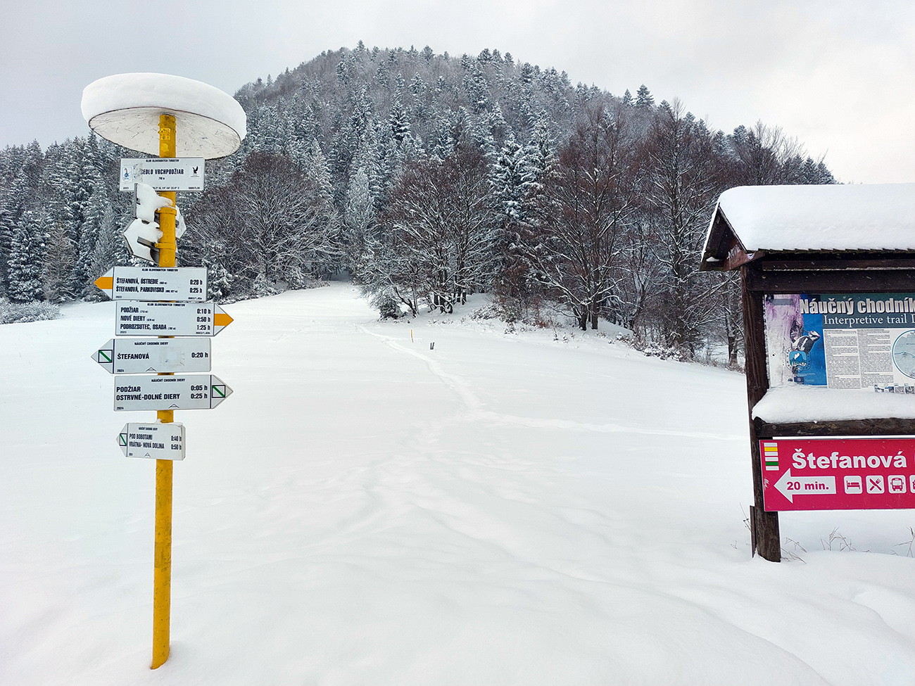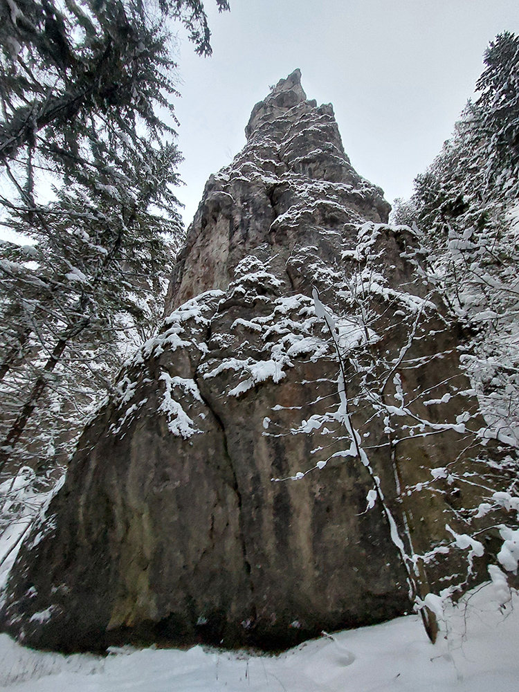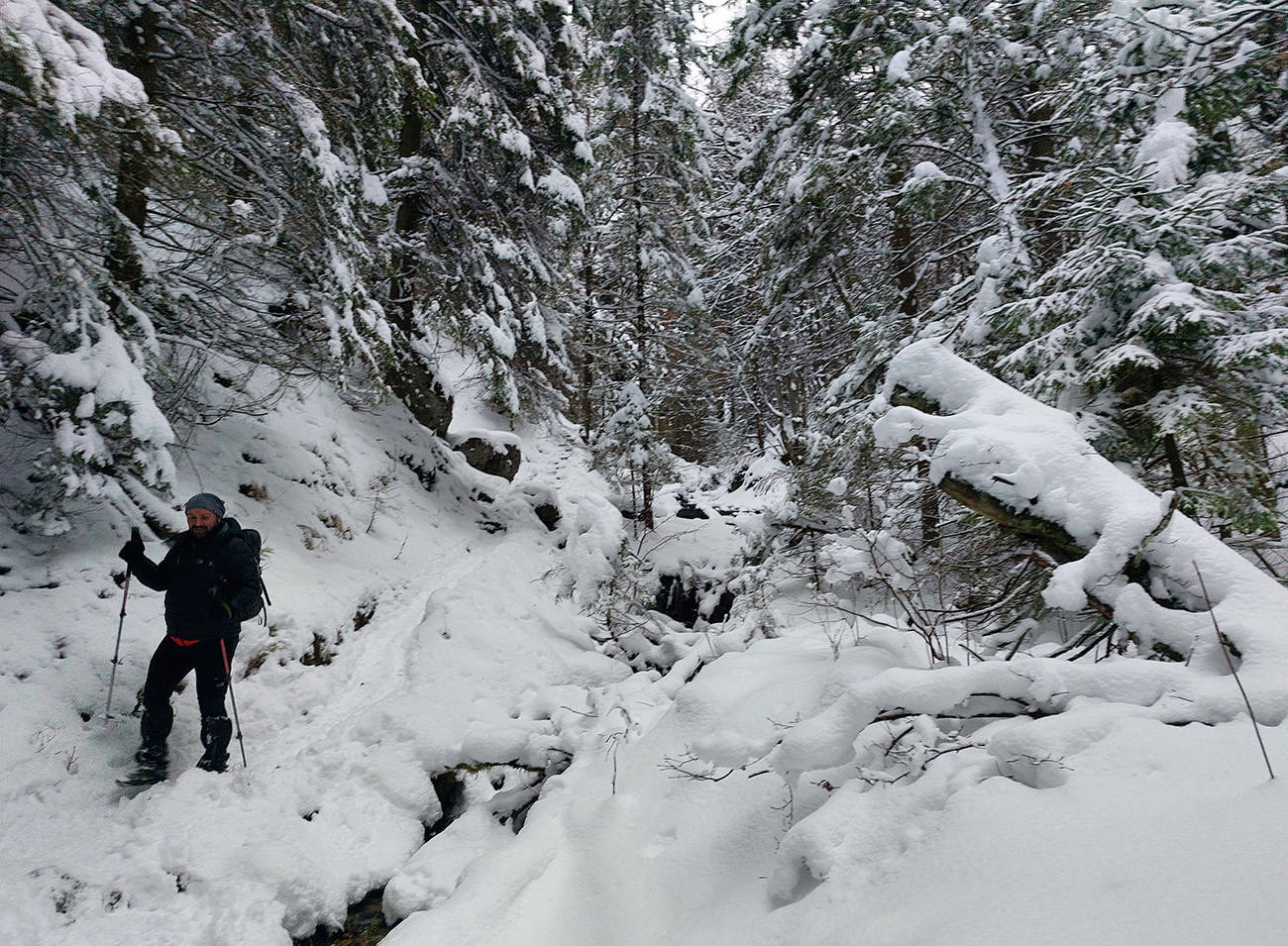 Úvod nič moc, z centra Terchovej do Bieleho Potoka popri ceste , lebo aj Terchová sa viac stará o to, aby autám a nie pešiakom sa dobre žilo, keď nasneží. Potom ale už Dolné diery a síce chodník prechodený, ale iba pár ľudí, navyše v našom smere. Vychutnávačka čerstvo obielených brál, poriadne dlhých cencúľov, hravého potoka a jeho ľadových doplnkov, no jedna paráda!