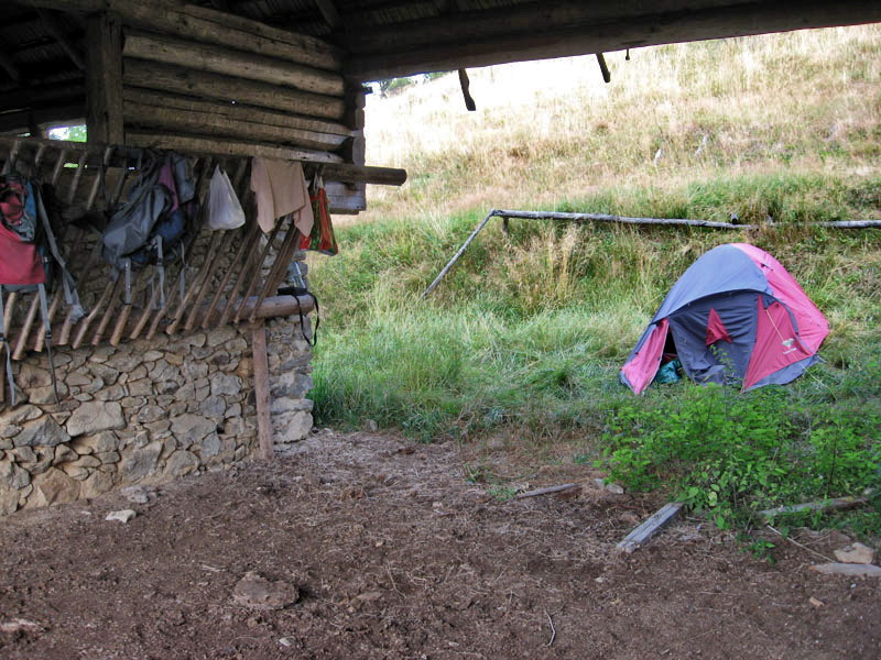 V sedle pod Vartou odbočujeme na žltú, o chvíľku už vidíme útulňu. Je to stará „dvojizbová“ drevenica, komfort neskutočný! Povala je sčasti prerobená na „grupenspálňu“ - matrace, stolík, lavička. My ale volíme pohodlnejšiu dolnú variantu – postele v dvoch „apartmánoch“. Zo studničky pod chatou tečie tradične len studená, umývame sa bleskovo. Medzitým sa zotmelo, obloha sa vyjasňuje a padajú veeeeeľké meteority. Keď o desiatej hasíme oheň, miestna líška nám prichádza dať dobrú noc. Bludný deň je za nami, ďalšie 2 pred nami. Ráno musíme vymyslieť, ako zachovať nohy v suchu. Asi to zvrtneme po žltej značke dolinou Veporského potoka a po lúkach pomedzi lazy Javoriny sa vrátime nazad k Sihle.