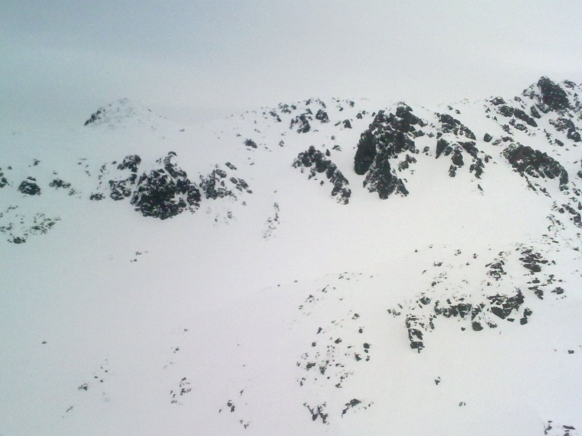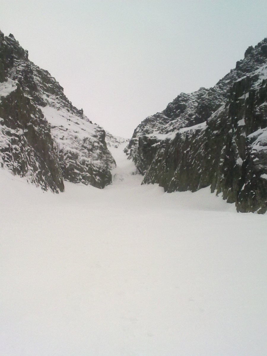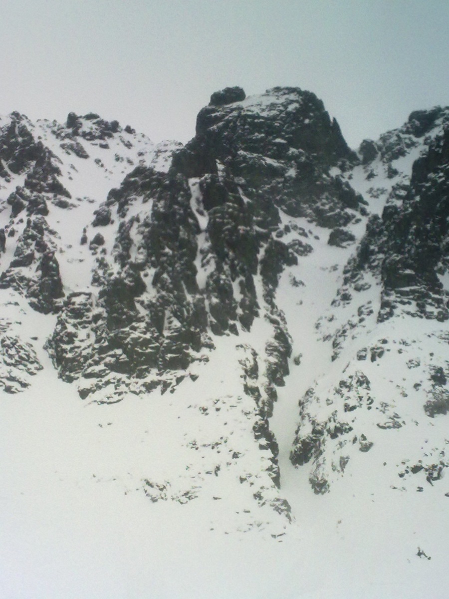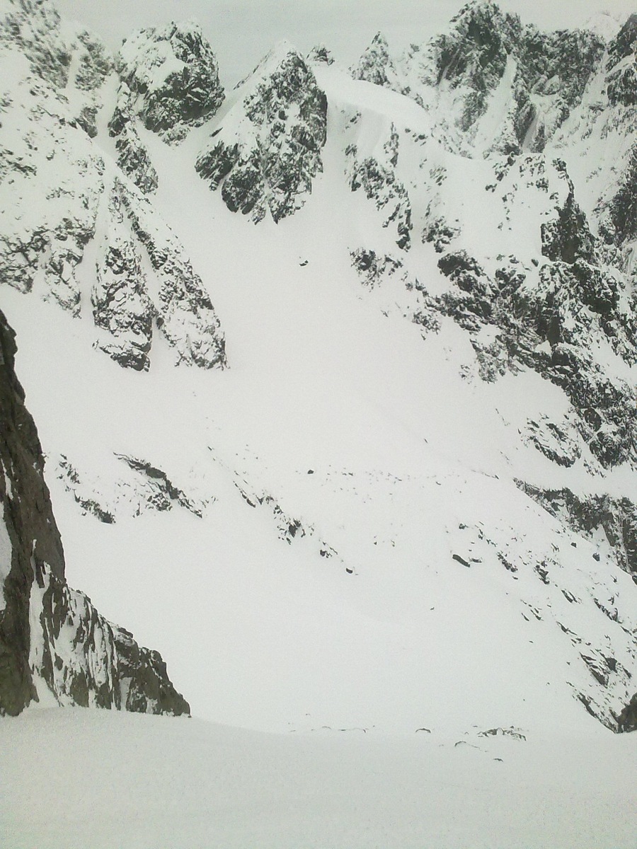 Na Sliezskom dome pozeráme, ako sa za nami pomaličky hmla plazí hore, ale vyzerá to ešte na dlhšie. Super, viditeľnosť by mala byť dobrá. Začíname šliapať, sneh je na počudovanie vo výbornom stave. Je tvrdo, ale nie ľadovo. V doline, nad Večným dažďom už pomaly obzeráme, čo všetko by sa cez vikend mohlo opáčiť. V späťákoch sa začína objavovať hmla, kým sa stihneme otočiť, že čo sa deje, tak už nevidno ništ. "Tak toto som ešte nezažil", kukám na Peťa, ten tiež ešte neverí vlastným očiam. Tak, radosť znova predčasná. Tipujeme, kade asi ďalej do doliny, vidno je tak po špičky lyží. Pri nástupe do Krčmárovho žľabu sa hmla zázračne rozostúpi, skoro ako v rozprávke. A my obzeráme, akože vyzerá prah v strede žľabu. Dobre, skoro ho tam ani nevidno. Sneh tiež výborný, nuž čo, také podmienky nebývajú často... Ide sa. Keď bude zle, otočíme. Šliape sa dobre, výškové metre pribúdajú a sneh je lepší, čím vyššie sa ide. Za chvíľu sme hore v sedle a obúvame sa na zjazd. Začíname lyžovať, hmla tiež začína svoj triumfálny návrat.