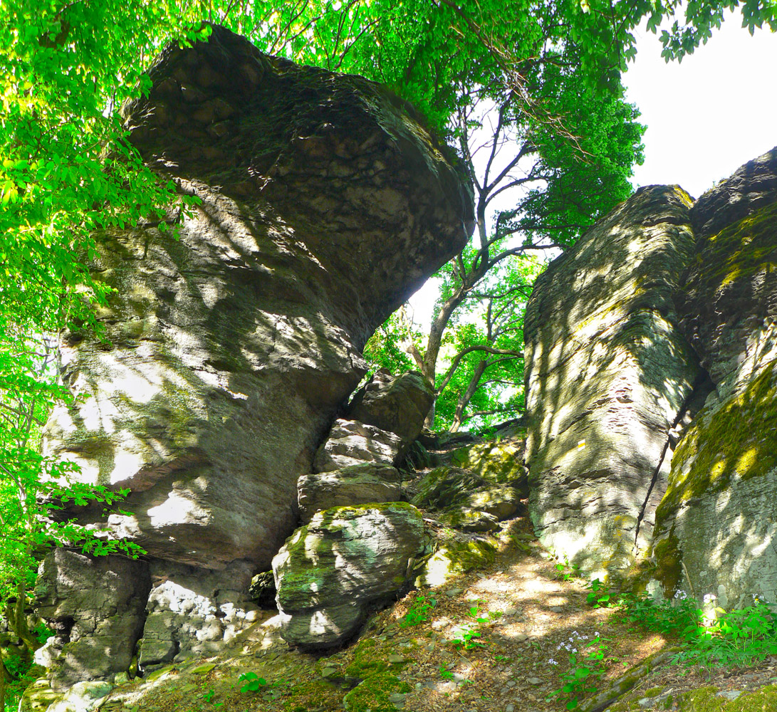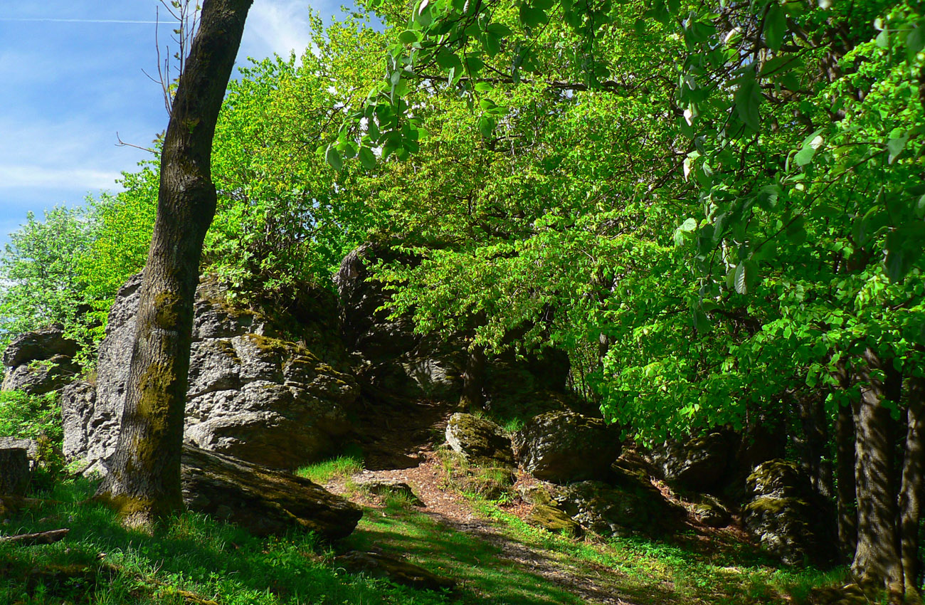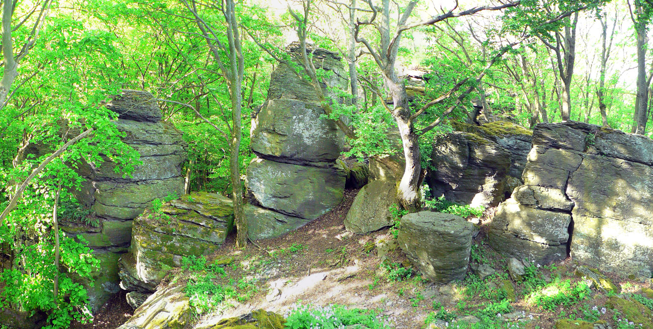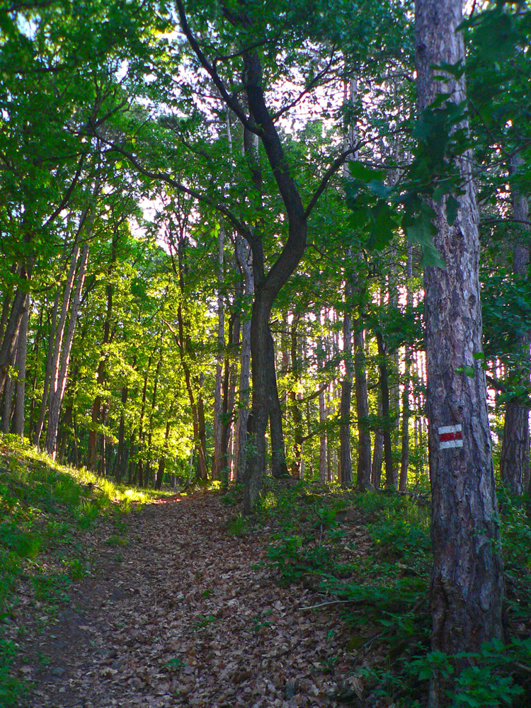 Na začiatku sa treba „premotať civilizáciou“, čo znamená asfalt z Moraviec cez Žitavany až pod les. V lese nádherný chodník presvetleným dubovým lesom, len po chvíli prejde na lesnú cestu. Nuda ale nehrozí, okolo sa objavujú zaujímavé skalky. Poľovnícka chata Hladina je už na okraji rozľahlých a veľmi pekných Obyckých lúk. Oplatí sa hneď na ich začiatku spraviť si zachádzku po žltej na Benát - nádherné, veľké skalné mesto s výhľadmi na Požitavie. Obzor v diaľke uzatvára hrebeň Tríbča, akurát pod nohami je hnusná jama nového kameňolomu. Typické Slovensko...