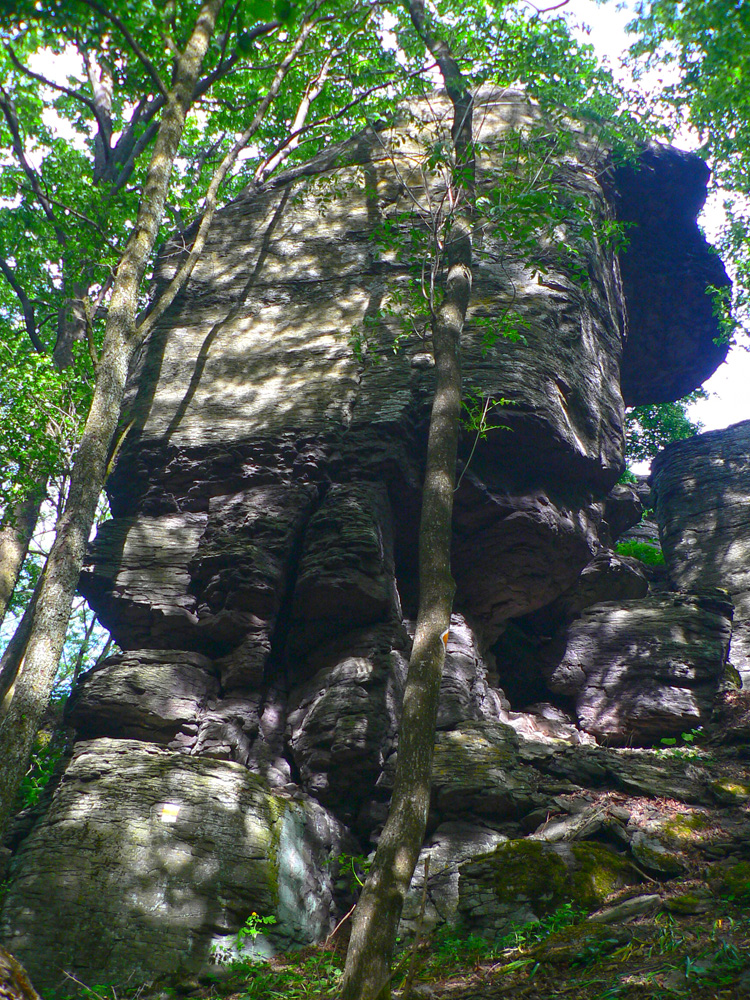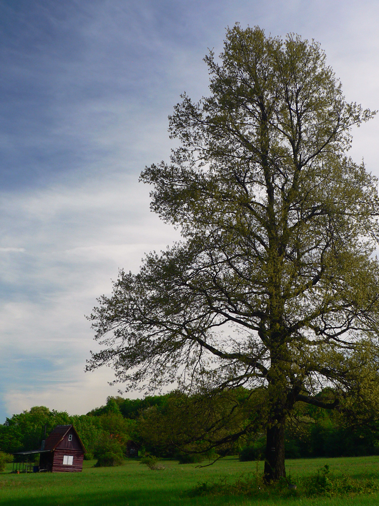 Potom cesta lesom až pod Veľký Inovec, dokonca je tu aj (hádam jediný) kus ihličnatého - práve okolo sústavy vodojemov a jednej slabo čurkajúcej studničky. Voda v nej fajná, len sa treba poriadne ohnúť k nej. Inovecké sedlo je už neďaleko - tým názvom trochu preháňa, je to len lúka, ale zasa pekná, a ešte krajšie sú tie okolo vrcholu Veľkého Inovca (901 m). Od chaty je nádherný priehľad lesom na mochoveckú atómku a z vrcholových brál na celé Štiavnické vrchy a kus nížiny pod nimi.