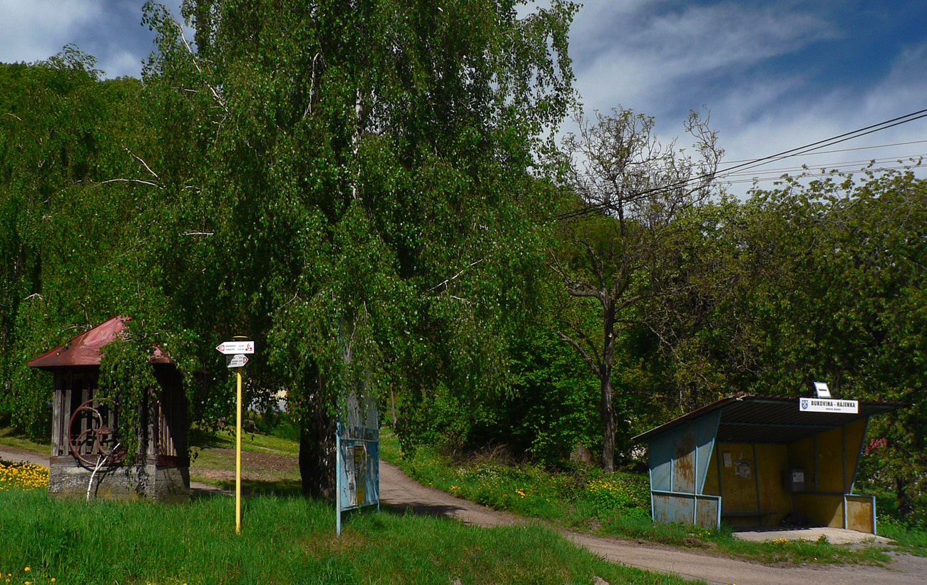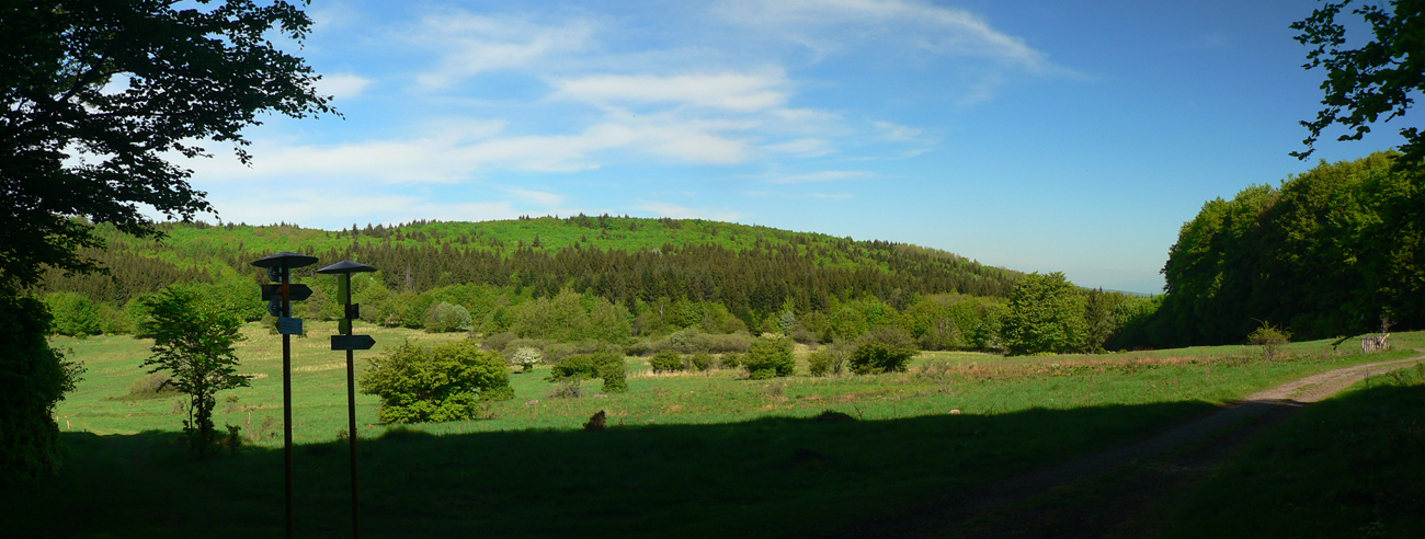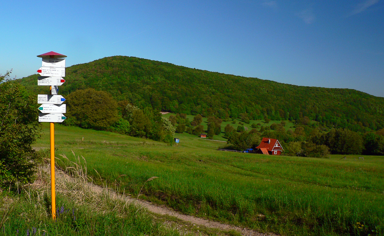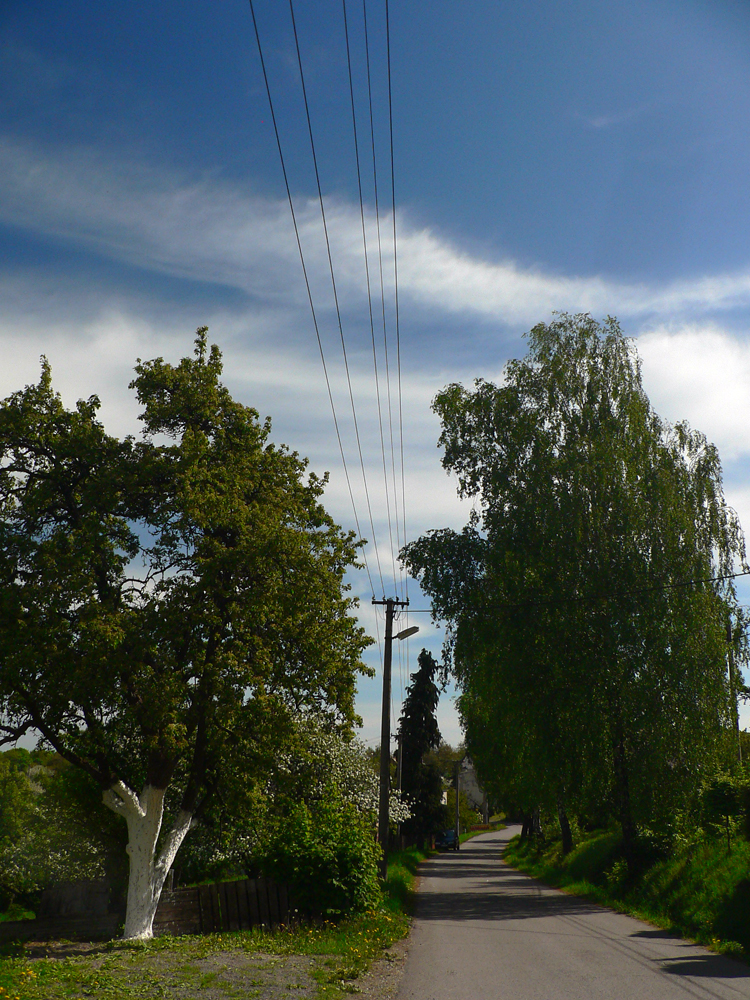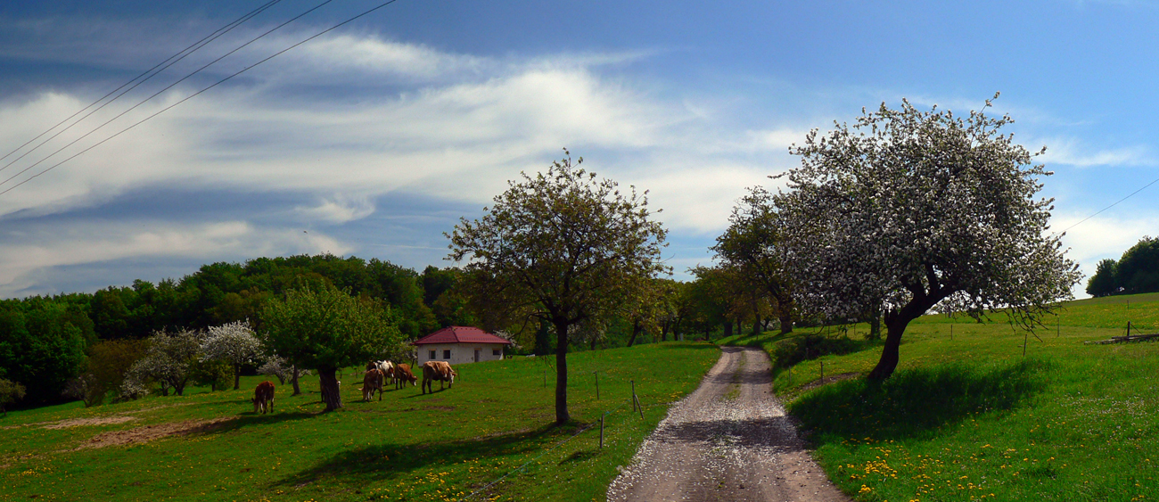 Po návrate na lúky je to kus poriadnej romantiky: solitérne stromy, bzučiace včely, roztrúsené chatky... A stredom lúk ide nová, široká cesta, po ktorej behajú náklaďáky do toho lomu :-))) Ak je aj vyššia tráva, stĺpiky so značkami spoľahlivo vedú.