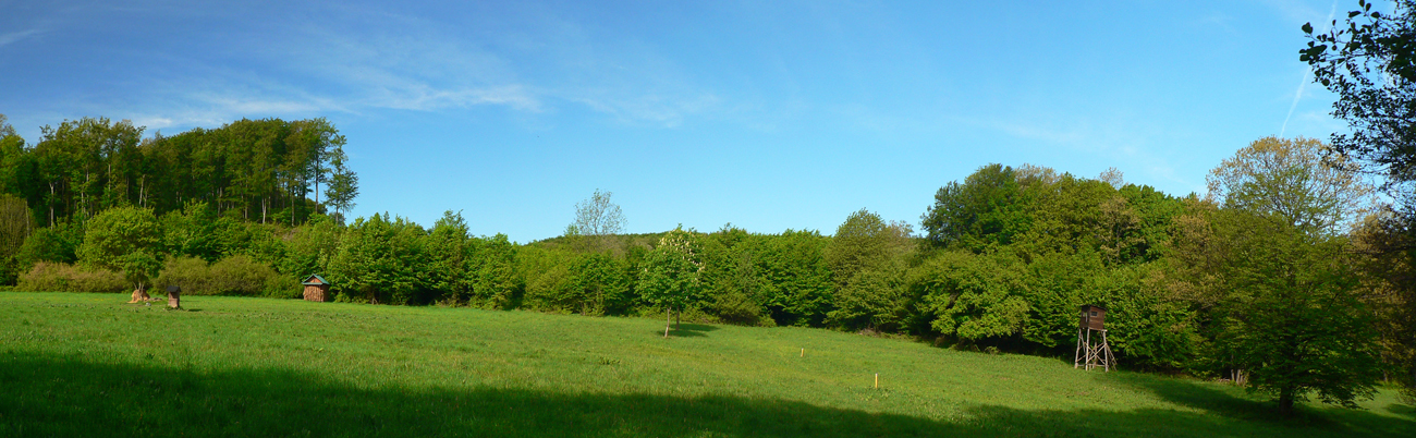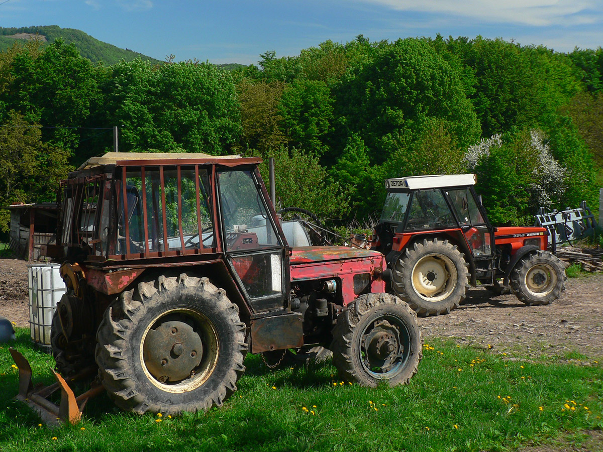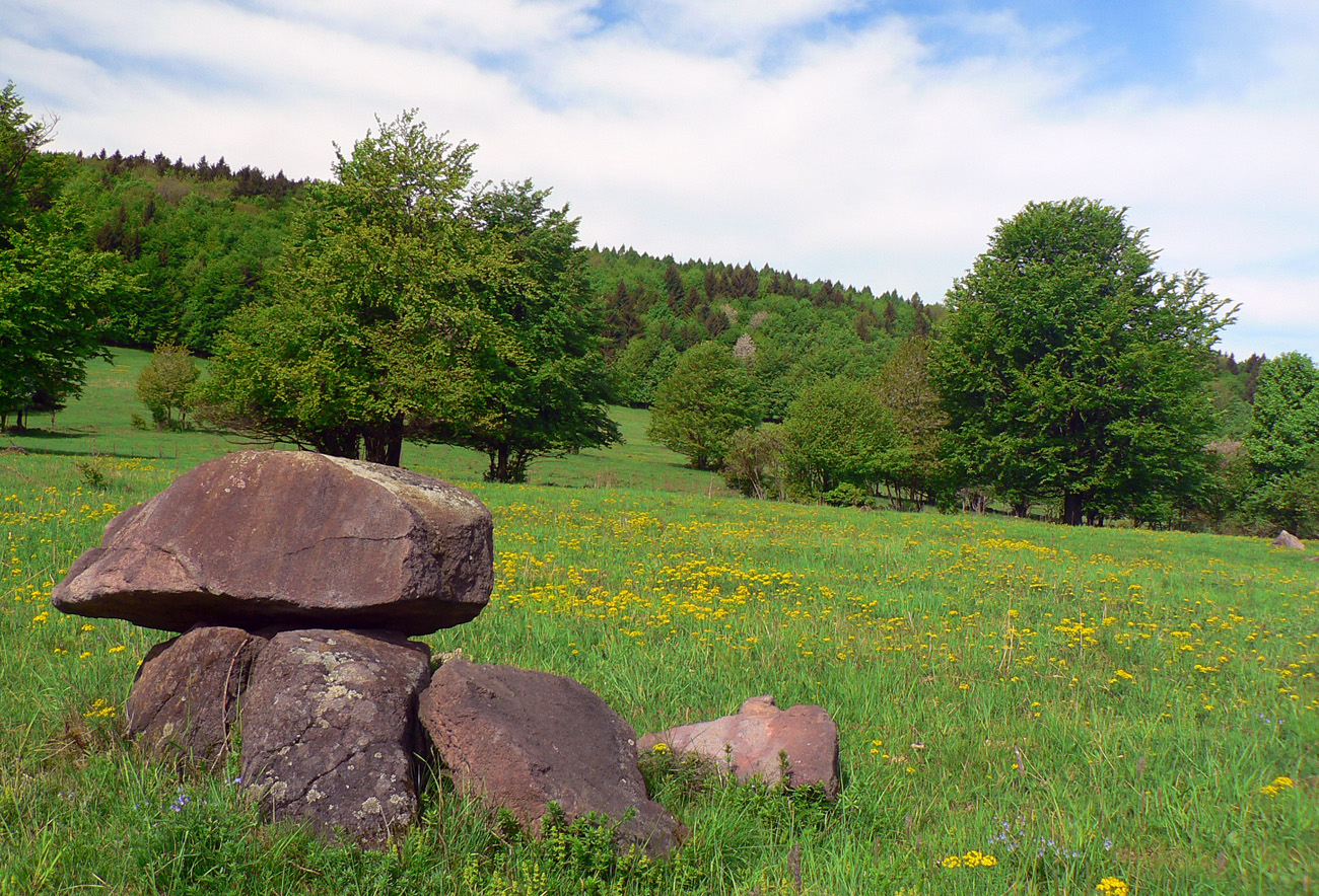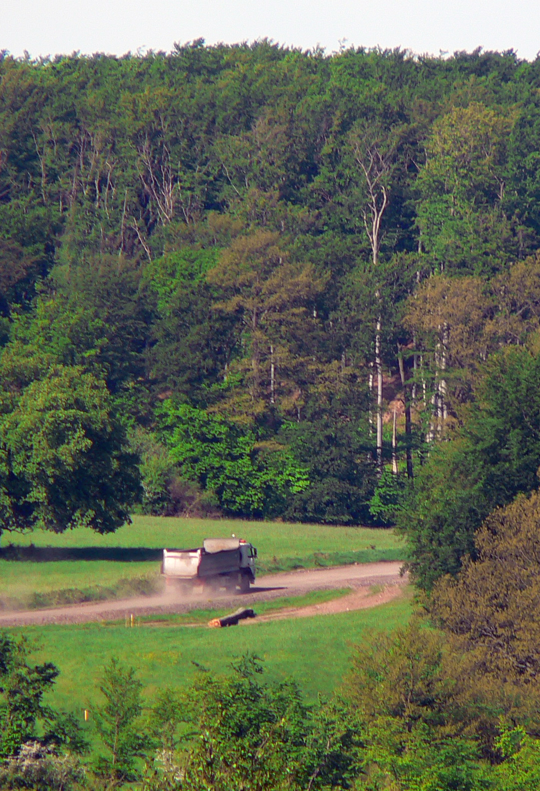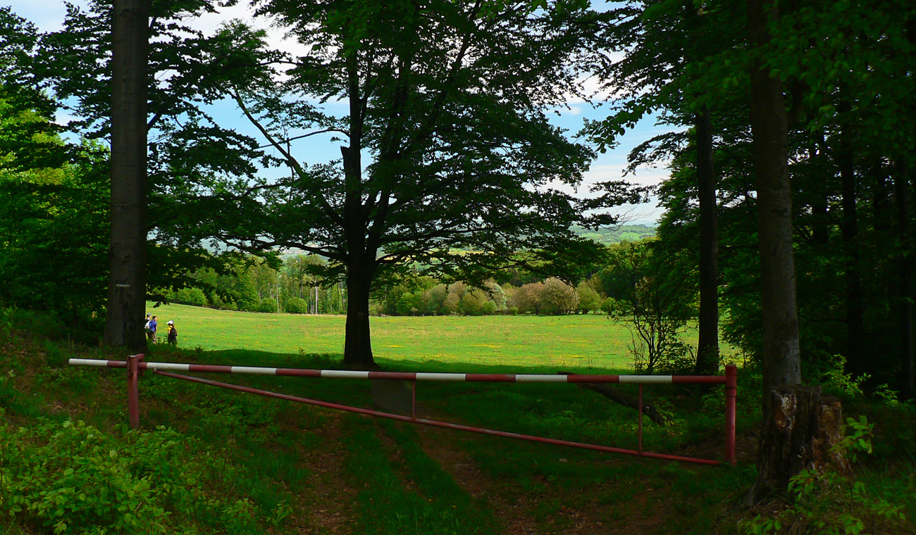 Po návrate na lúky je to kus poriadnej romantiky: solitérne stromy, bzučiace včely, roztrúsené chatky... A stredom lúk ide nová, široká cesta, po ktorej behajú náklaďáky do toho lomu :-))) Ak je aj vyššia tráva, stĺpiky so značkami spoľahlivo vedú.