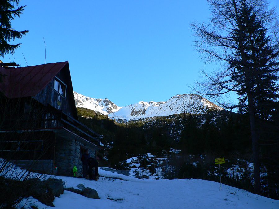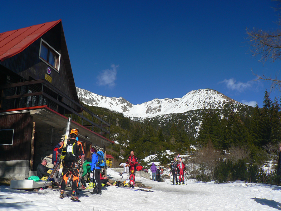 Ešte posledný výšľap do Smutného sedla, tentoraz už komfortný, v stope po pretekároch. Hore bezvetrie a teplo, ale zas ten mrak! Takž pohľad do Smutnej doliny sa nekonal, zato lyžovačka nazad na Terasu parádna, toto je ako zjazdovka :-) V kosodrevine pod snehomernou latou pár nesmelých kľučiek kosovkou, ale veľmi rýchlo išli lyže na batoh a až po chatu som radšej došiel po vlastných. Definitívne prezúvanie do tenisiek pri odbočke z cesty na modrú značku a potom už len pešovanie striedavo po asfalte, ľade a firnovej kaši k autobusu. Posledné obzretie k chate a Smutnému sedlu a tam čo? No samozrejme modrá obloha, mraku nikde :-)