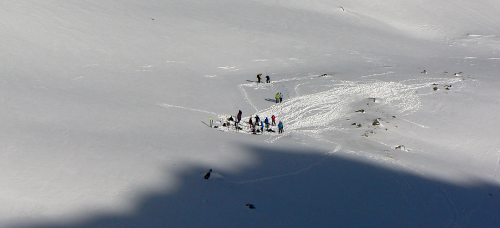 Ľudí všade ako maku, aj kurzisti kopú ako diví na pár miestach, stopy ako koľajnice do všetkých strán vedú. Tak idem konečne do toho Lúčneho sedla a na Hrubú kopu, čo som minule v hmle netrafil. Aj tam davy, no čo, konečne pekný deň vyšiel. Pod Kopami to už mäkne, hore v sedle je ľadovo - vyfúkané, ešte kúsok sa dá na lyžiach a potom už len peši až na Hrubú Kopu.