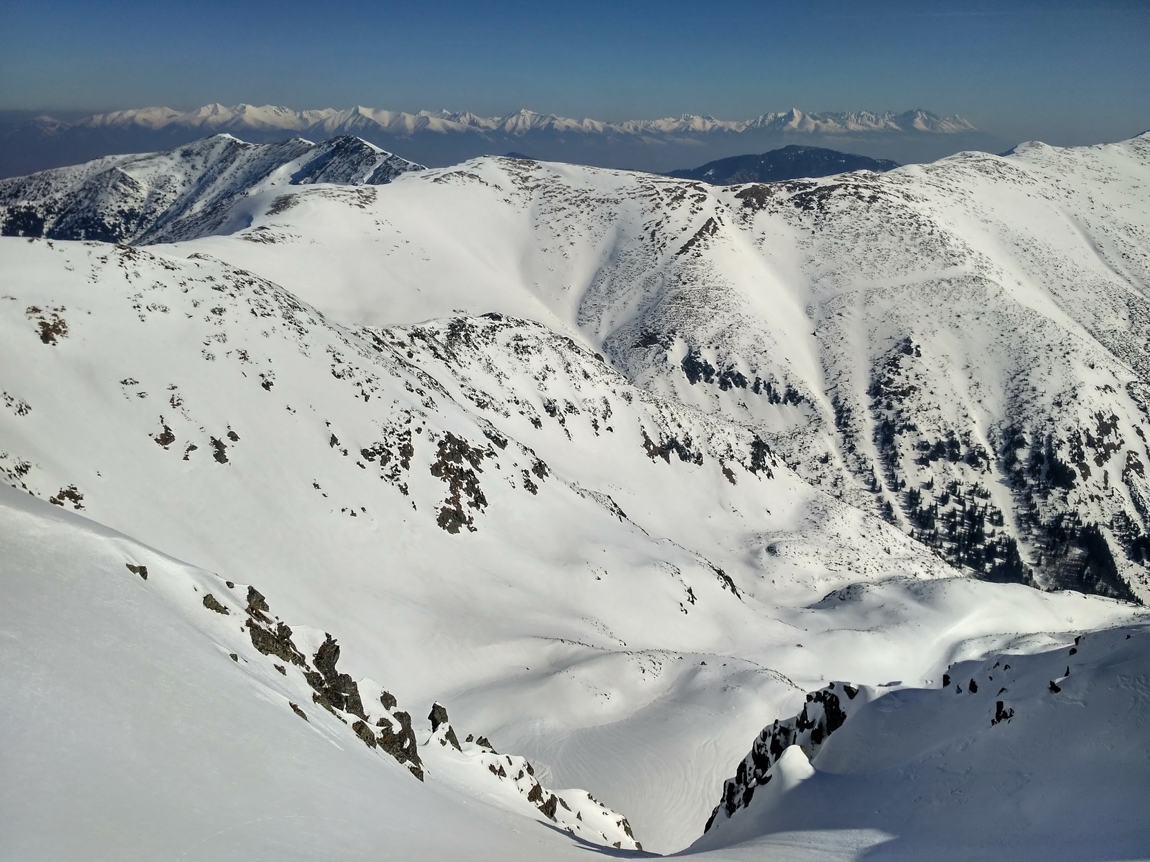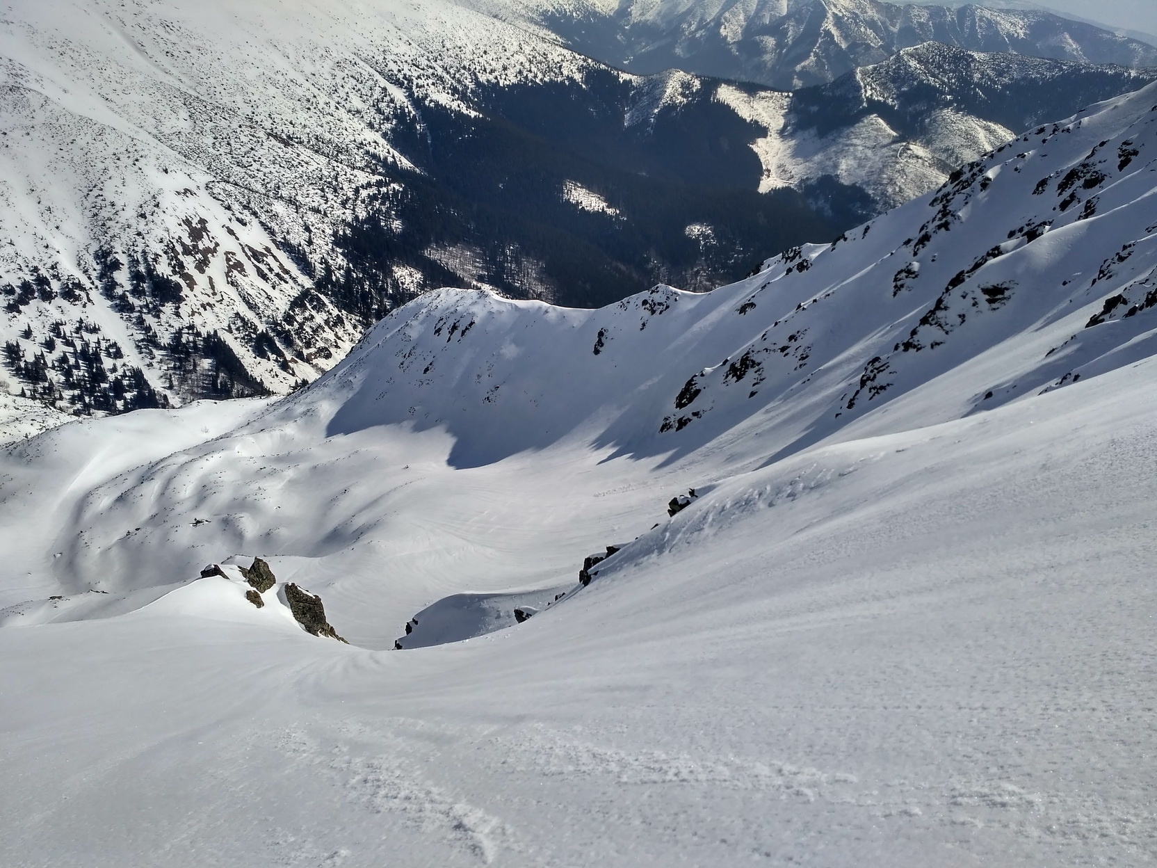A keďže toto skóre sa mi pozdáva, pretože nie je pokorujúce, ale naopak motivujúce, zahájim ústup a zlyžujúc na dno Vajskovskej si po návrate na hrebeň pridelím ešte peknú SVV líniu z vrcholu Poľany. Je už trochu kyprejšia, ale čo už. Na dve dokonalé krásky za deň musím ešte nejaký ten sopeľ utrieť.