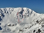 Som na vrchole znova udivený ďalším špecifikom Skalky - priestrannosťou. Len ťažko na Slovensku nájdete prírodné futbalové ihrisko vo výške 2000 metrov. Napriek rozložitému vrcholu však Skalka rozhodne nie je jednotvárna "buchta" a hlavne jej divoké severovýchodné úbočie ponúka viaceré línie na hranici extrémov. Do jednej z nich už dlhšie zvedavo nazerám, zatiaľ však nemám šťastie trafiť ju v podmienkach.