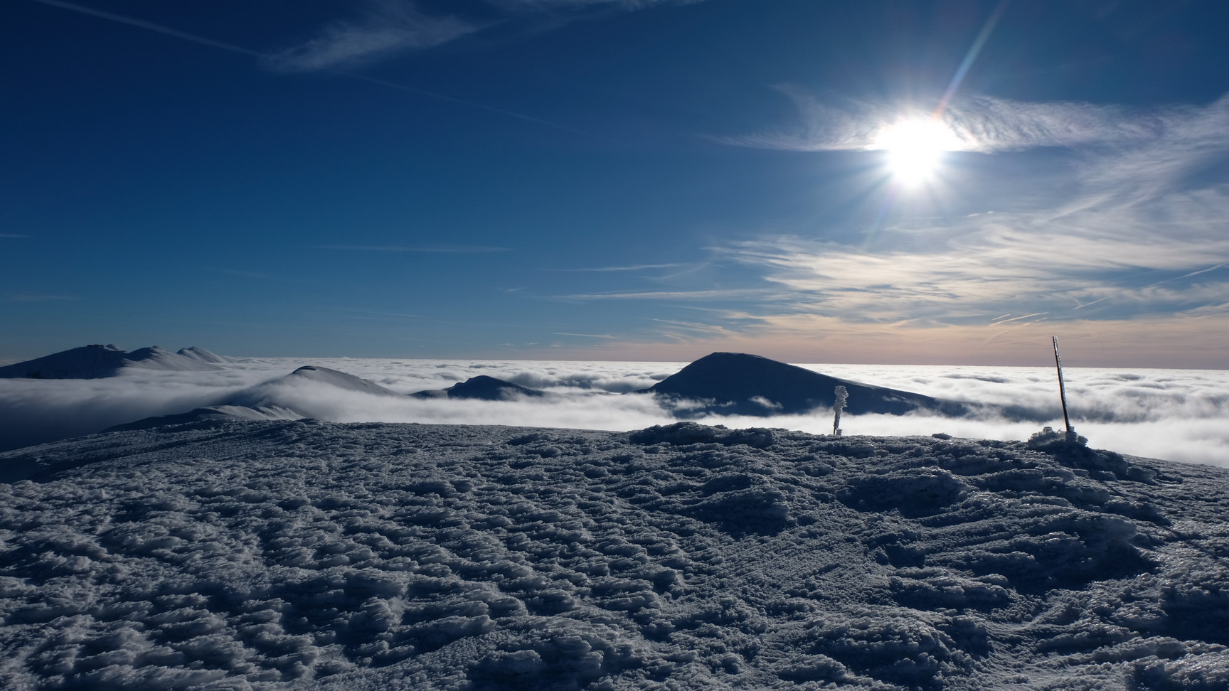 Na dne Lomnistej nalepím a popod „cunami“ stúpam nazad na Chabenec, z ktorého ma čaká dlhý zjazd do Magurky. Najprv kľučkujúc hlavným hrebeňom, ktorý v túto vetristú zimu veľa snehu nepodržal, následne žľabom začínajúcim v mieste odbočenia rázsochy k Mestskej hore. Jeho pravá strana je v podvečernom slnku pripravená prijať dekadentné rokokové girlandy alchymistových lyží. Spodná položenejšia časť je už v tieni, teda zákonite drkotavá, ale to je len maličké zlo na záver vydareného dňa.