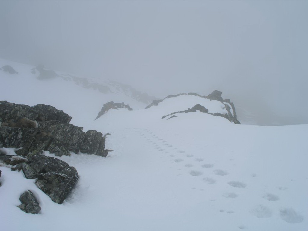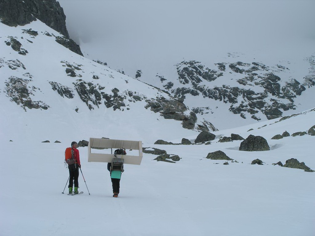 Tohtoročná jar s vynikajúcimi snehovými podmienkami doslova vyháňa do hôr. Nový výstroj znásobuje moje nadšenie a po pár sychravých dňoch využívame hneď ten prvý, ktorý sľubuje lepšie počasie. Cestou na Popradské sa nám podarí chytiť stop a o to viac si tam vychutnávame kávičku pri debate, kam ďalej. Prebieha tu kurz záchranárov, dnes sa teda budeme cítiť bezpečne. (Pri tej príležitosti si spomínam na nezaplatený šek z Alpenvereinu :)
