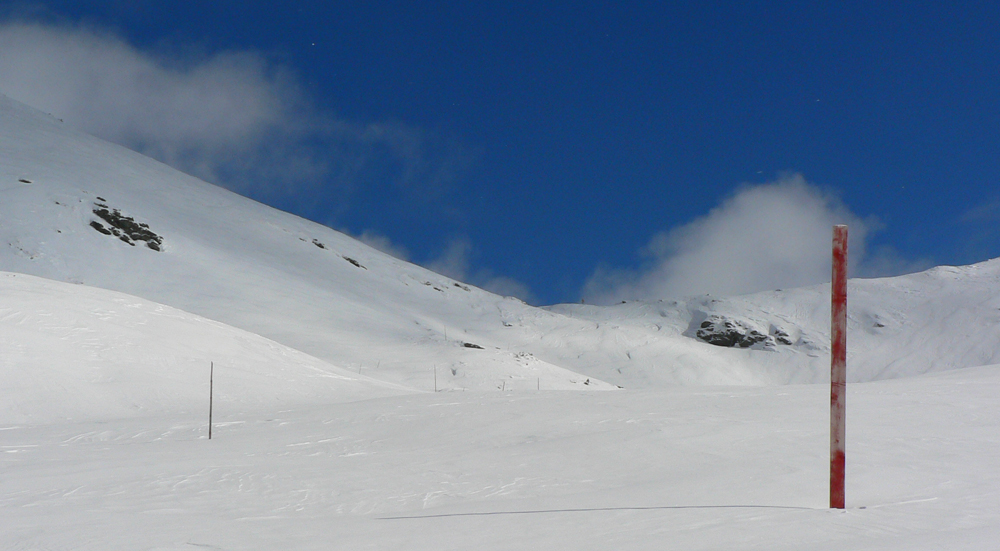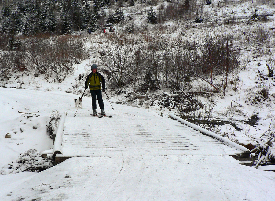 Do Žiarskej sa v sobotu ráno nedalo od parkoviska, až asi o kilák vyššie som sa odvážil do lyží skočiť a aj to som si ešte dlho dával pozor. Pod nočným suchým snehom mokrota z piatkového dažďa a paličky aj pod chatou sem-tam pichli do asfaltu. Jeden deň dažďa či slnka a bude po ceste. Nad chatou ľadový firn prikrytý 5-10cm suchého prášku, to v kosovke.
