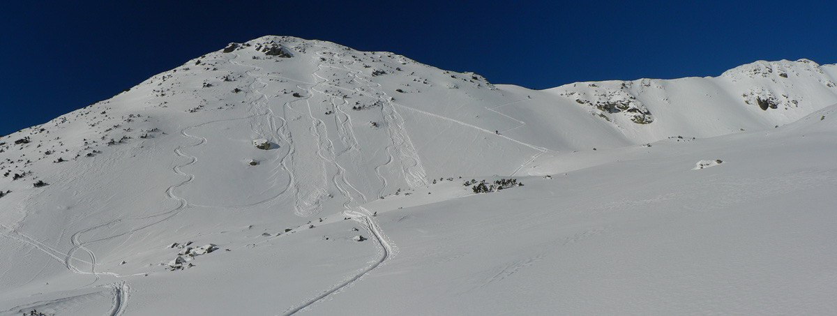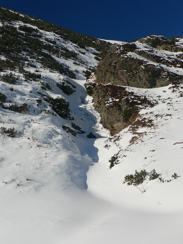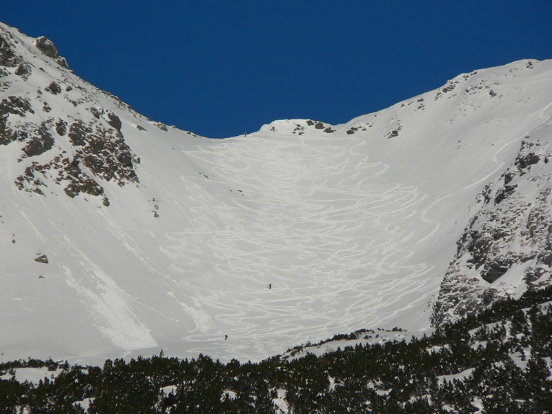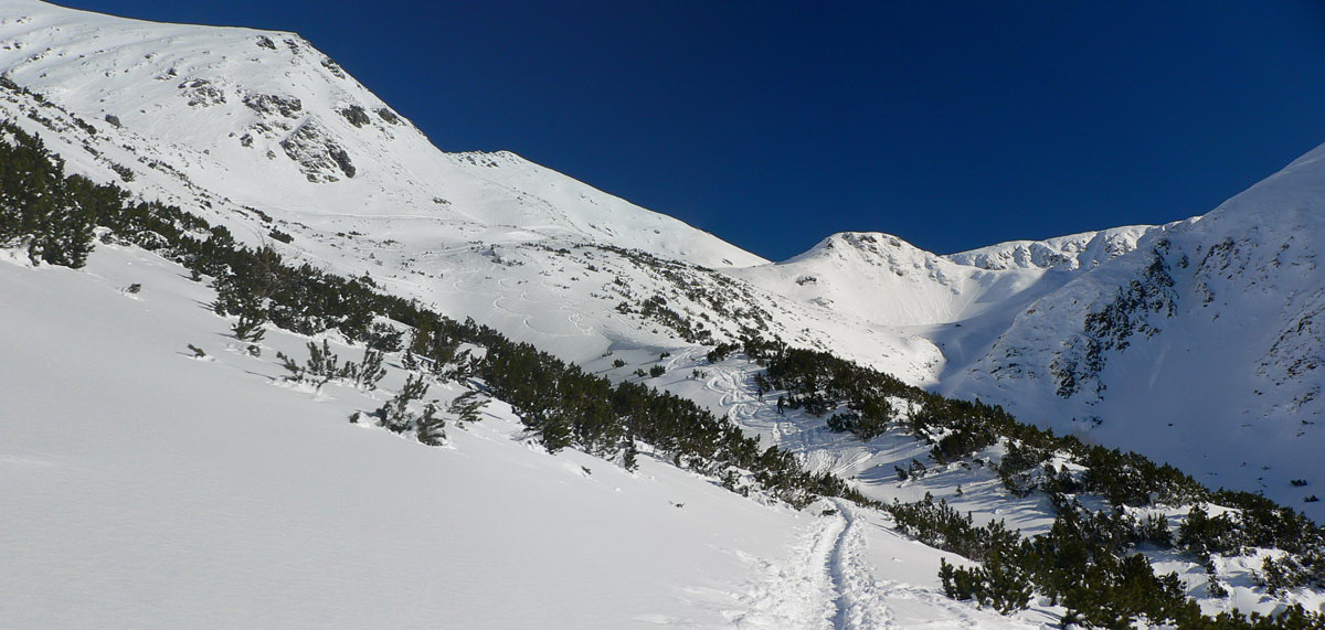 Nad kosodrevinou v Závratoch aj pod Smutným a Žiarskym sedlom to vyzerá krásne bielo, ale to len čerstvý prídel prachu z utorka a stredy zakryl skaly, takže oblúčiky treba robiť s veľkou opatrnosťou. Bolo vidieť pár držkopádov cez neviditeľné konáre a kamene. Ale skôr na plochých svahoch, žľaby v pohode. V kotline zima ako v ruskom filme, v závere doliny hicovalo slnko, sneh ťažký, ráno miestami aj kôrka na ňom, okolo obeda už sa na južných svahoch lepil na lyže.