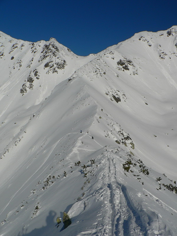 Všade bol na sobotu hlásený druhý stupeň, len v Západných Tatrách just tretí – malé splazy bolo vidieť všade - na severných aj na južných svahoch, najviac pod tmavými skalami, otočenými na juh. Ale väčšina ich pochádzala spred pár dní, do víkendu už ten čerstvý sneh trochu sadol a držal pod lyžami aj v strmších svahoch.