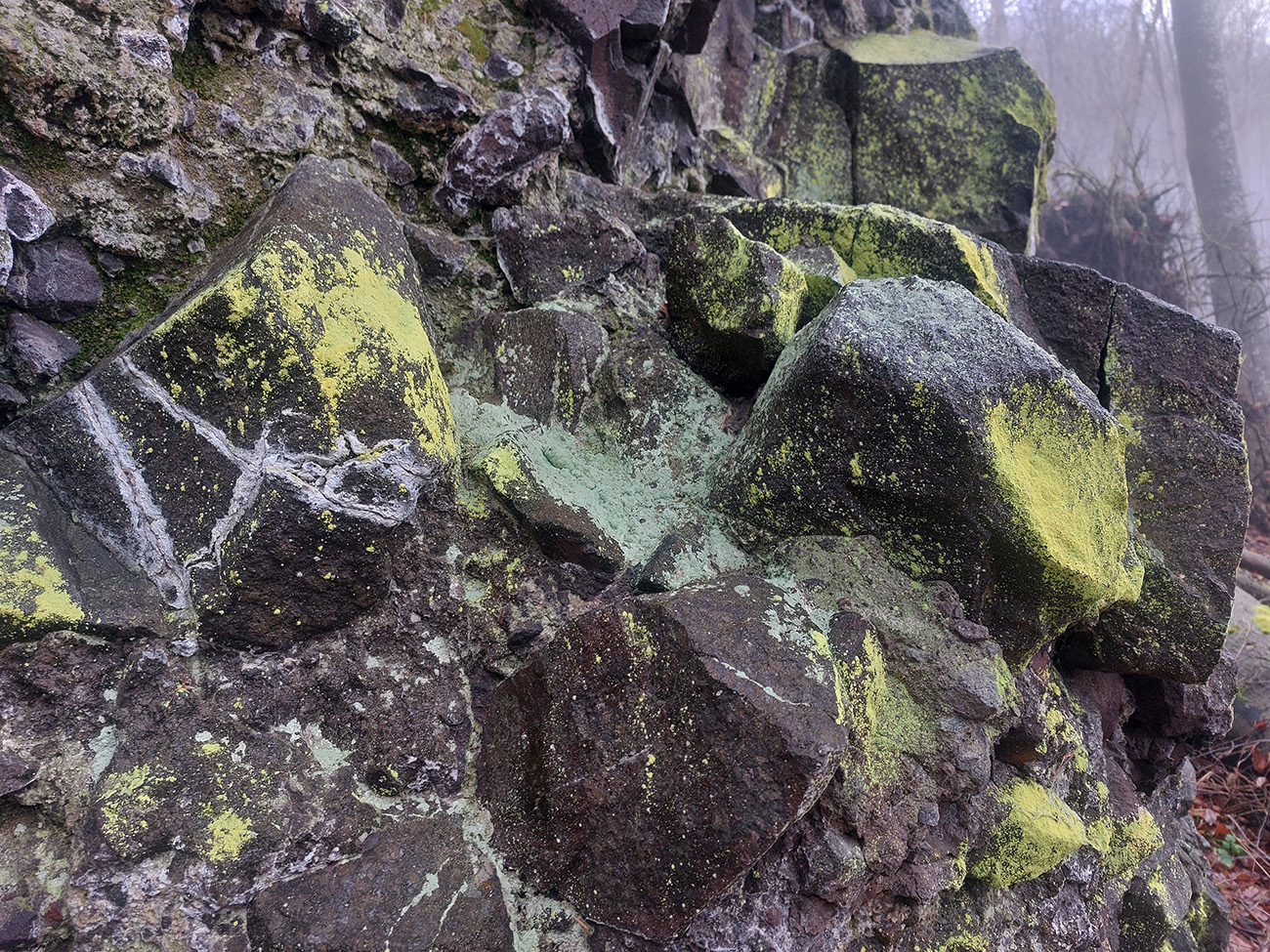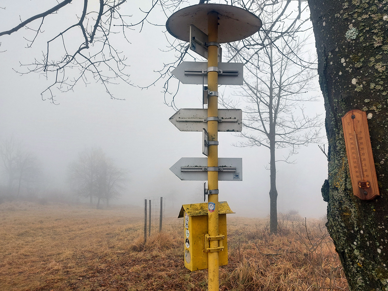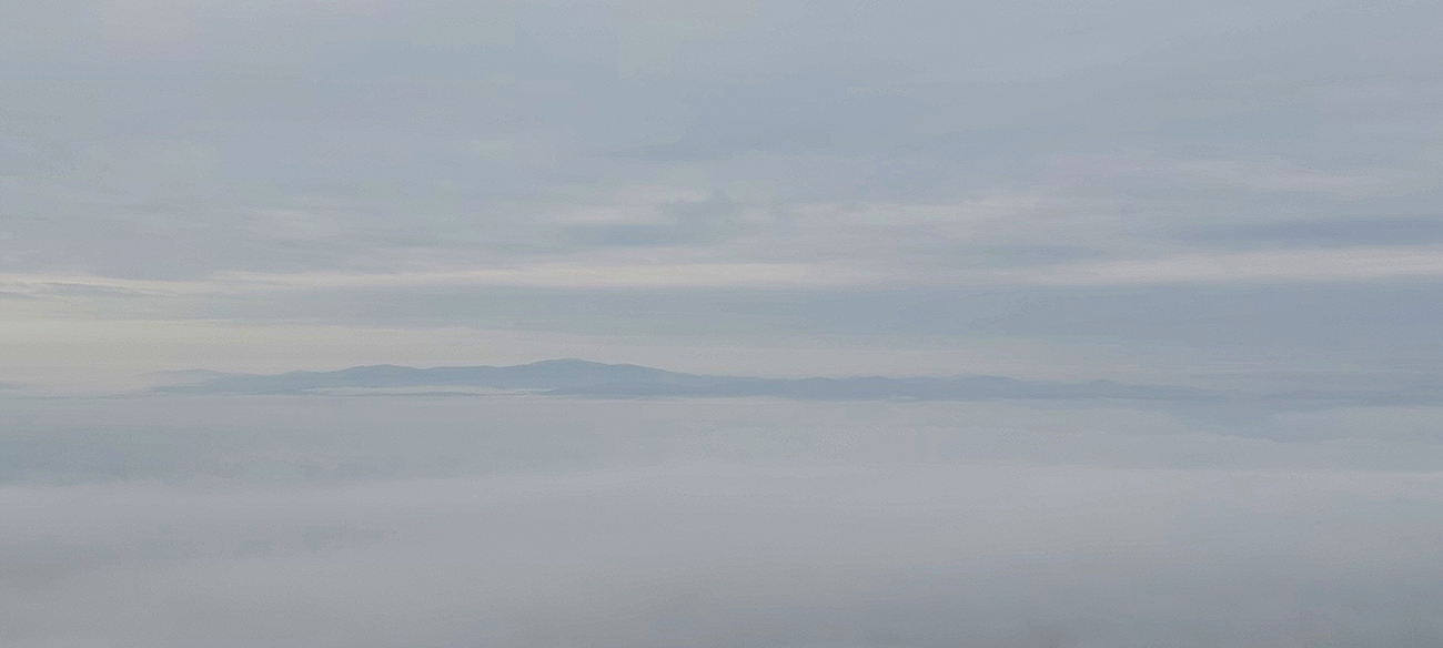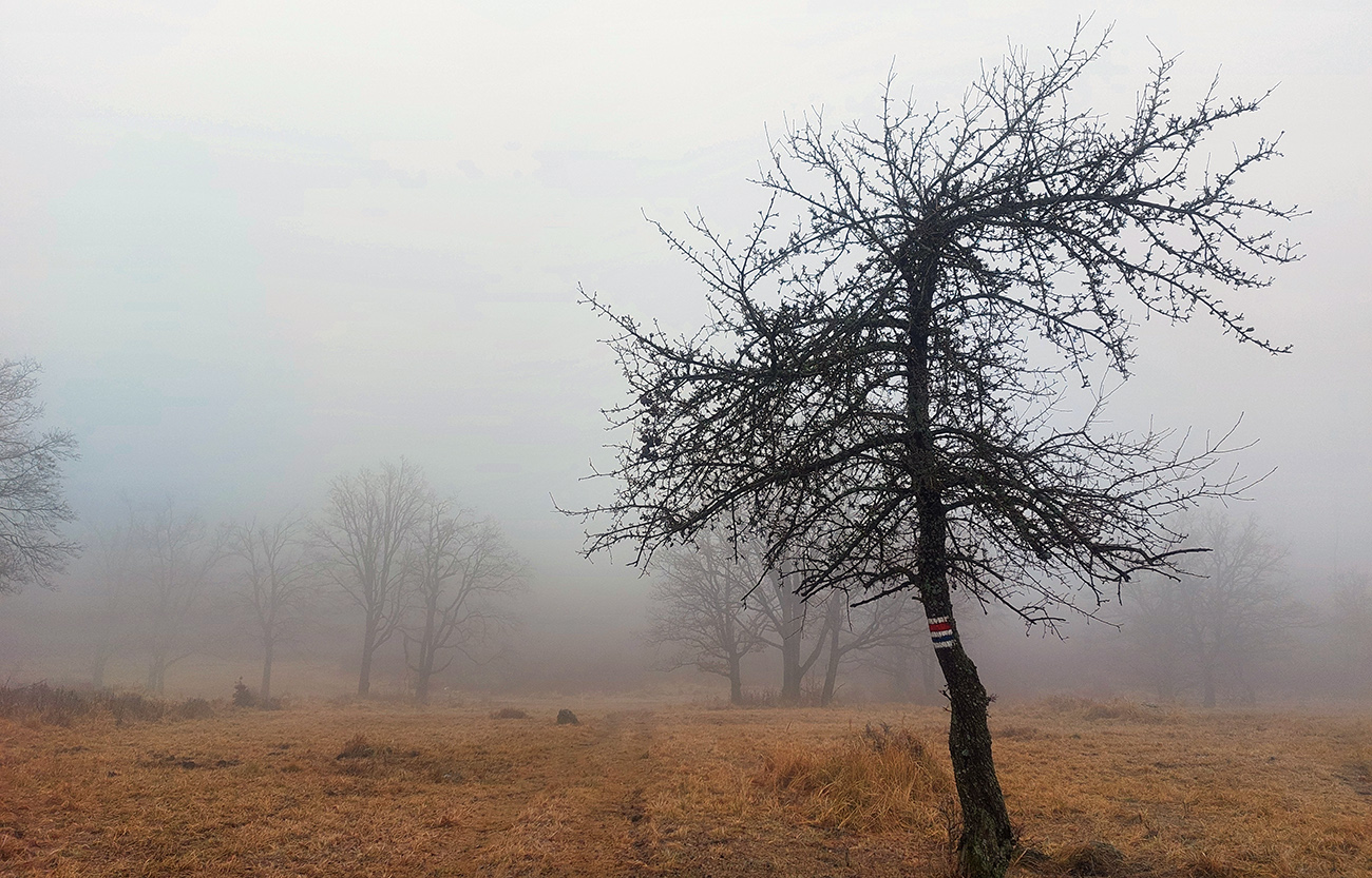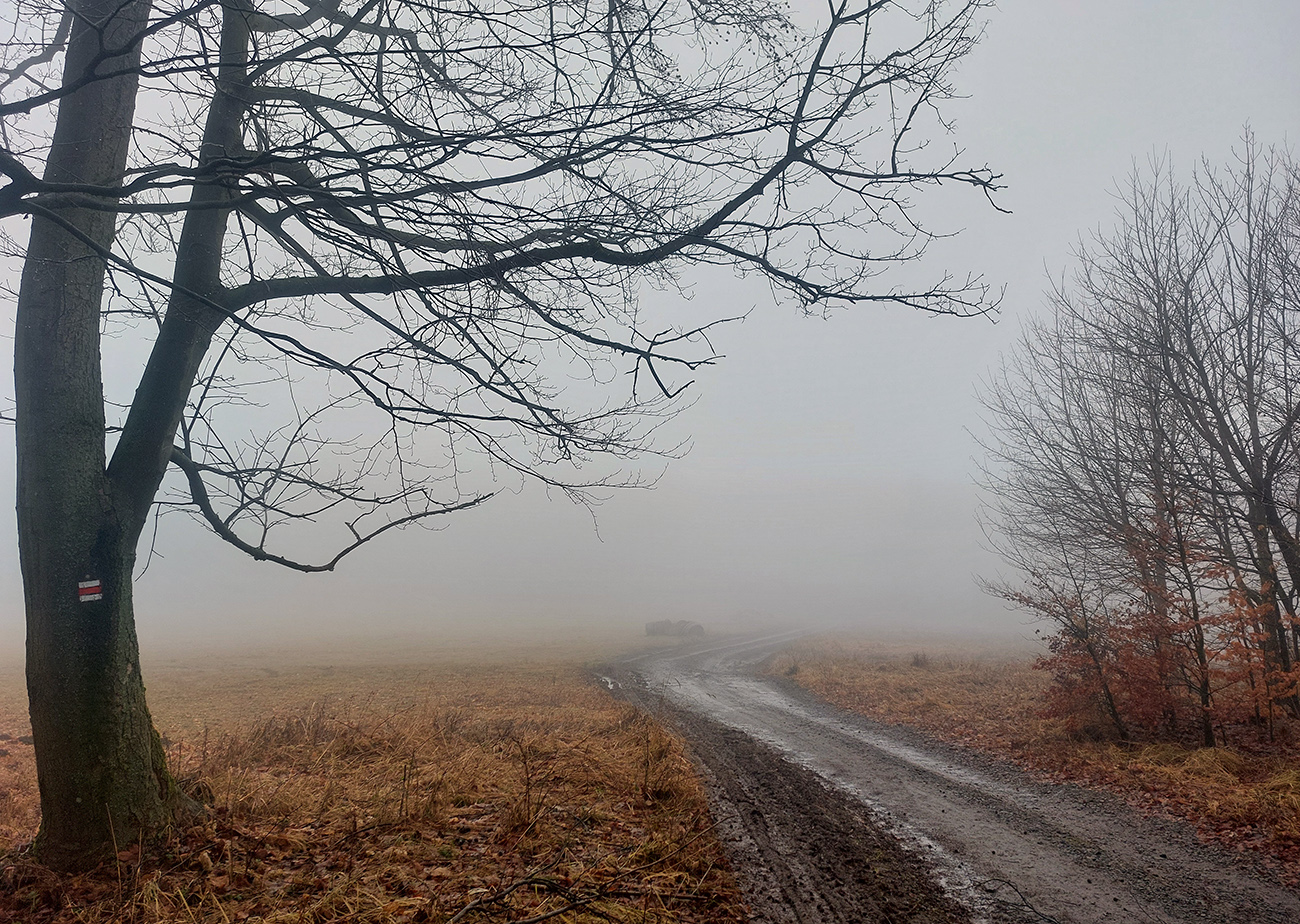 Horskú hradbu, oddeľujúcu Košickú kotlinu a Východoslovenskú nížinu, tvorí od severu na juh päť podcelkov, v podstate bývalých treťohorných sopiek (Šimonka, Makovica, Mošník, Bogota a Milič). Po Miliči som sa už raz motal ( TU ), asfaltové cesty cez Bogotu ma moc na pešiu turistiku nelákajú, tak prišiel rad na dve „sopky“ z názvu. A rovno poviem, že nič moc, ale GPX je hore, ak niekto chce. Je tam síce pár pekných miest, ale medzi nimi hafo fádnych lesných ciest, vylepšených koncom upršaného decembra 2025 (keď som sa tam motal) blatom po ťažobných strojoch. Do toho šedivé počasie s hmlou a občasným mrholením – to estetike moc neprospelo. Ale dobré to bolo na pobehanie a vyvenčenie tela. A aby som si potom vážil tie pekné dni :-) Takže som vyrazil od herlianskeho umelého gejzíru na vyhliadkové Rankovské skaly, vybehol na Makovicu, z nej zbehol na druhú stranu „hrebeňa“ popri „Skalách pod Pariakovou“ a potom už som len cez Herlianske sedlo a vrchol Mošníka dupal do Dargovského sedla, lebo odtiaľ ide každú chvíľu autobus: