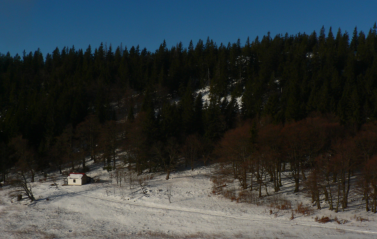 Kto pozná cestu z Donovalov pod Prašivú, isto si už niekedy všimol murovaný domček na pasienkoch sedielka Príslop (1137 m) medzi Kečkou a Štrosmi - bývalý salaš alebo čo to bolo. Pásli tu Podkoničania aj Selčania. Dnes stačí odbočiť dákych 100 metrov z červenej značky na okraji lesa pod Štrosmi. Nedá sa minúť a už je tam dlhšie aj šípka na palici. Je zhruba v polovici trasy a tiež aj „na polceste turistického vkusu“ – niečo medzi otvoreným prístreškom v Hiadeľskom sedle a drahým ubytovaním na Donovaloch.