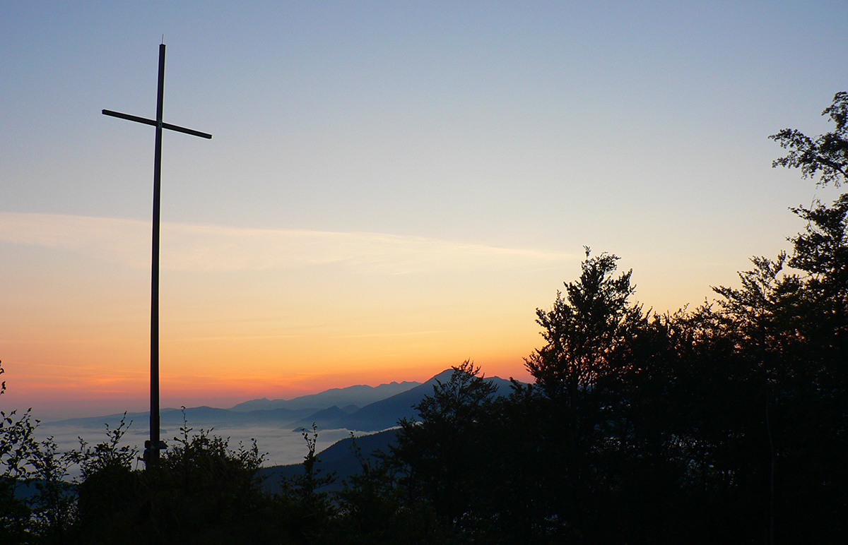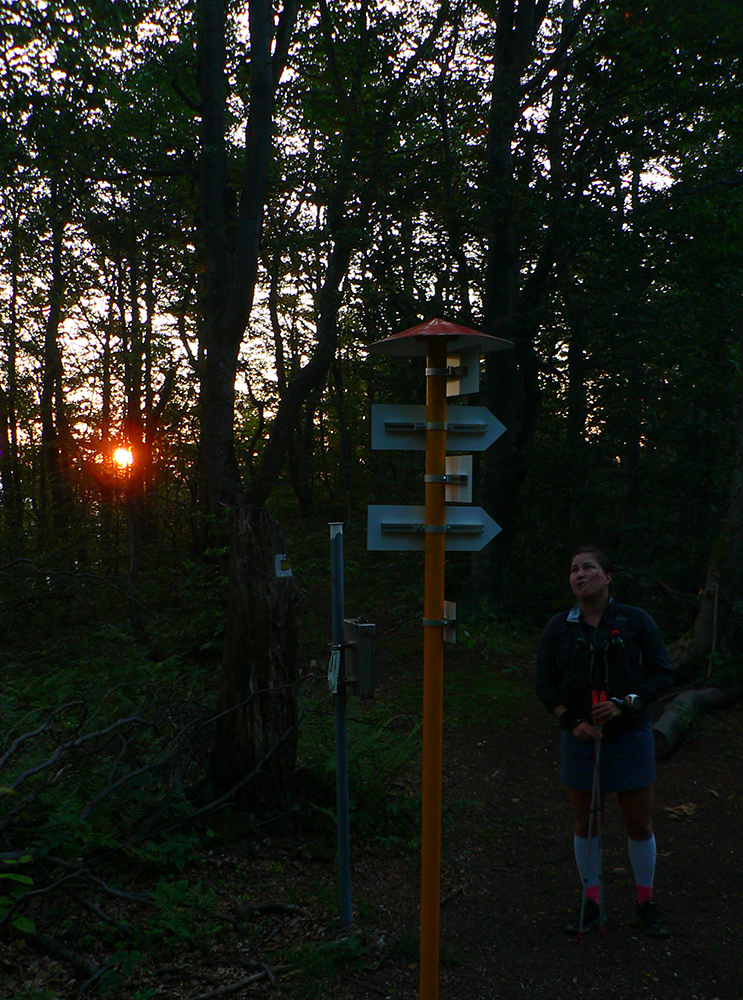Prekľučkovali sme mladinou ku smerovníku a v rýchlych zbehoch do Ľubochnianskeho sedla som zistil, že dáko nestíham. Aha, sily vyrovnané. Mysleli sme si, že za brieždenia stretneme aj nejaké zvieratká, ale len jeden smutný poľovník sa vyskytol. Smutný asi z nás, lebo: „Nejako skoro idete, chcel som tam ísť, ale keď už ste vy prešli, tak nič“. Aj vábničku mal so sebou, tak ktovie, či to bol fakt jeleň, čo sa ozýval z druhej strany doliny... Lebo dáko nesmelo a potichu, sa mi zdalo. Bonusom cestou dole boli zase výhľady (aj keď zásadne cez rúbaniská) – na zadekovaný Liptov s vychádzajúcim slnkom na jednej strane a na čistý Turiec na druhej. Medzi nimi hmlopád, valiaci sa cez Ľubochnianske sedlo, aj s vlhkým vetrom a popŕchaním zo stromov.