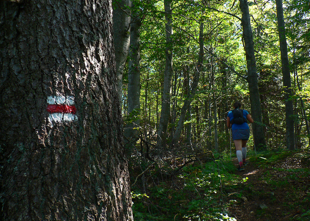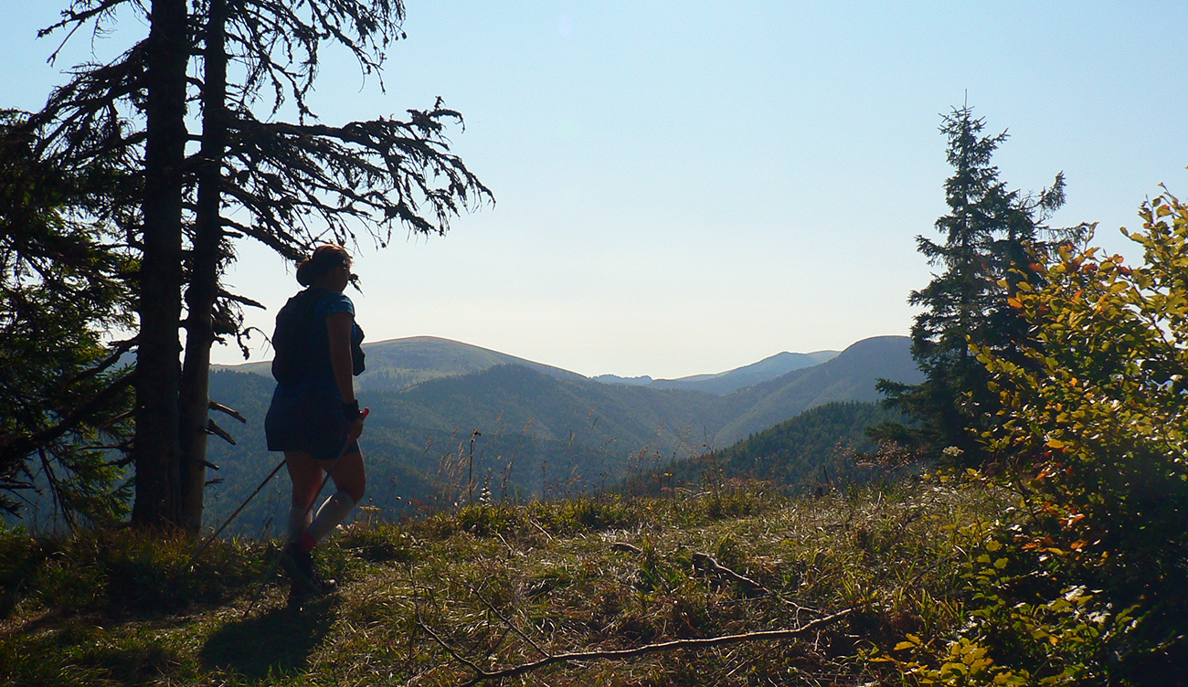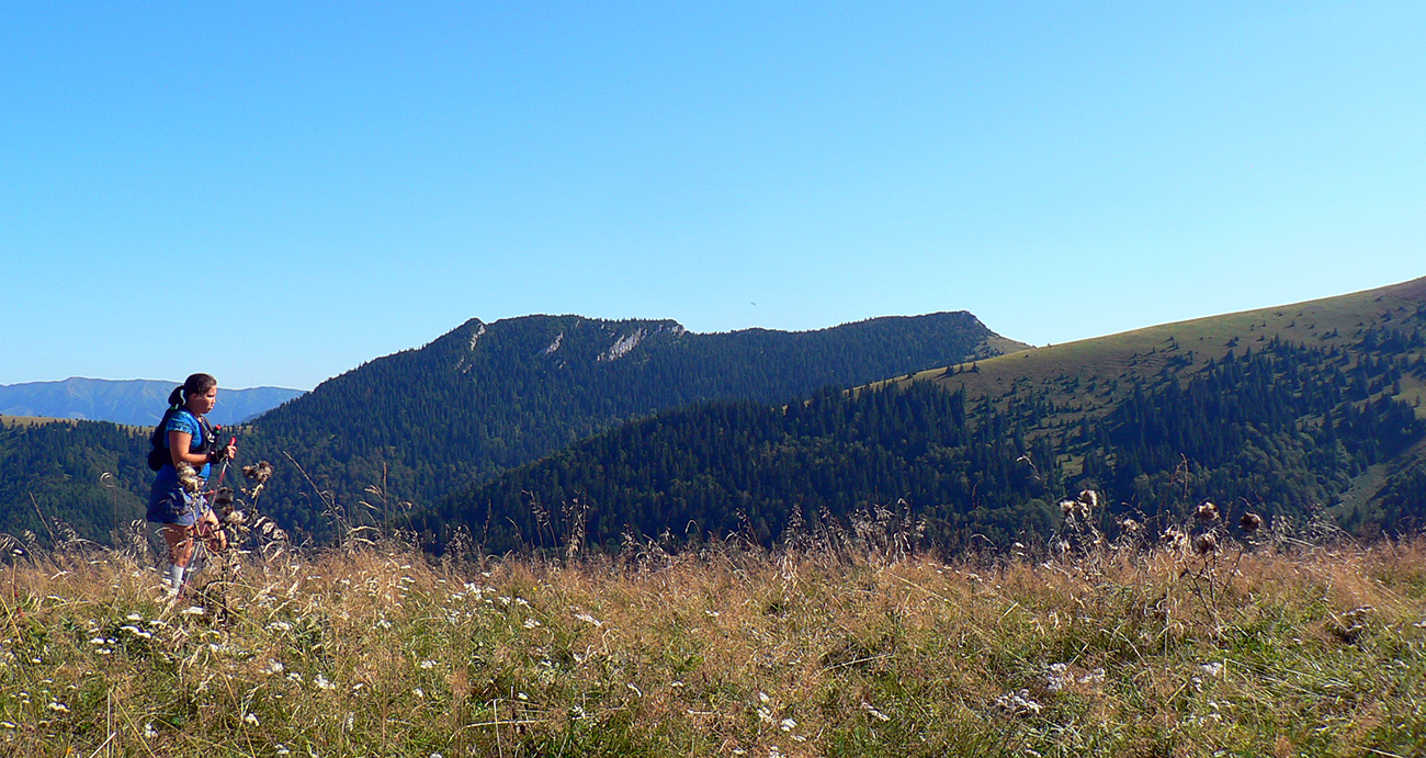 Internety ponúkajú 12 slovenských magistrál, táto je tretia najkratšia (43,8 km), ale zato poriadne zubatá (2238 m). Lenže to je z Krížnej do Ľubochne a Julka to vymyslela opačne - a prevýšenie hneď vyskočilo na krásnych 3500 m. To už je šmakocinka nie len taká ledajaká - na tých kilometroch. Mne ako domorodcovi to akosi ani nedochádzalo, ale malokarpatskej ultracelebrite, ktorá nerada moc dlho a moc prudko do kopcov, to dosť vŕtalo v hlave. Bola to nakoniec jedna z „hlavných tém dňa“. Mne skôr vždy vŕtalo v hlave, prečo ide červená značka po tomto západnom, a nie po východnom hrebeni Veľkej Fatry. Ten je turistami obľúbenejší, krajinársky krajší a menej namáhavý. Naproti tomu kto chce zažiť poriadnu divočinu aj s úzkymi chodníkmi, preliezačkami a predieračkami, mieri skôr sem, na červenú. Vo Veľkej Fatre je vraj aj najväčšia koncentrácia pralesov a ich zvyškov na Slovensku.