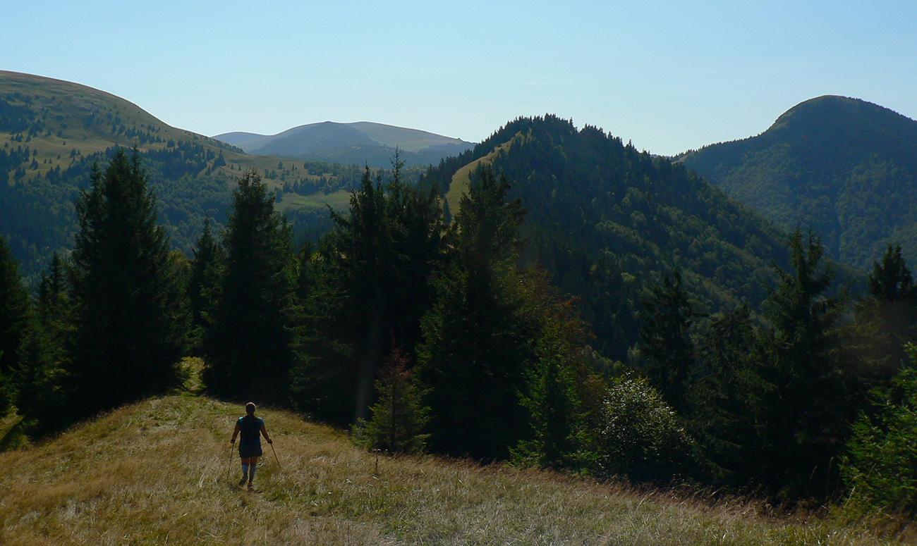 Zo sedla teda rýchlo preč, ale vlastne pomaly, lebo do druhého poriadneho stúpania. Očakávania smerom do Príslopu zneli: pretápiť sa strminou na lúky nolčovských holí, tam stretnúť aspoň nejakého dzivého zvera, poriadne dotankovať, lebo po Borišov už nebude kde a užiť si výhľady do Turca. Jediné to dotankovanie vyšlo poriadne. Zvery boli len domáce (bučiace) v Príslope a trápenie v strmine bolo poriadne a na výhľady nebol čas a tak...